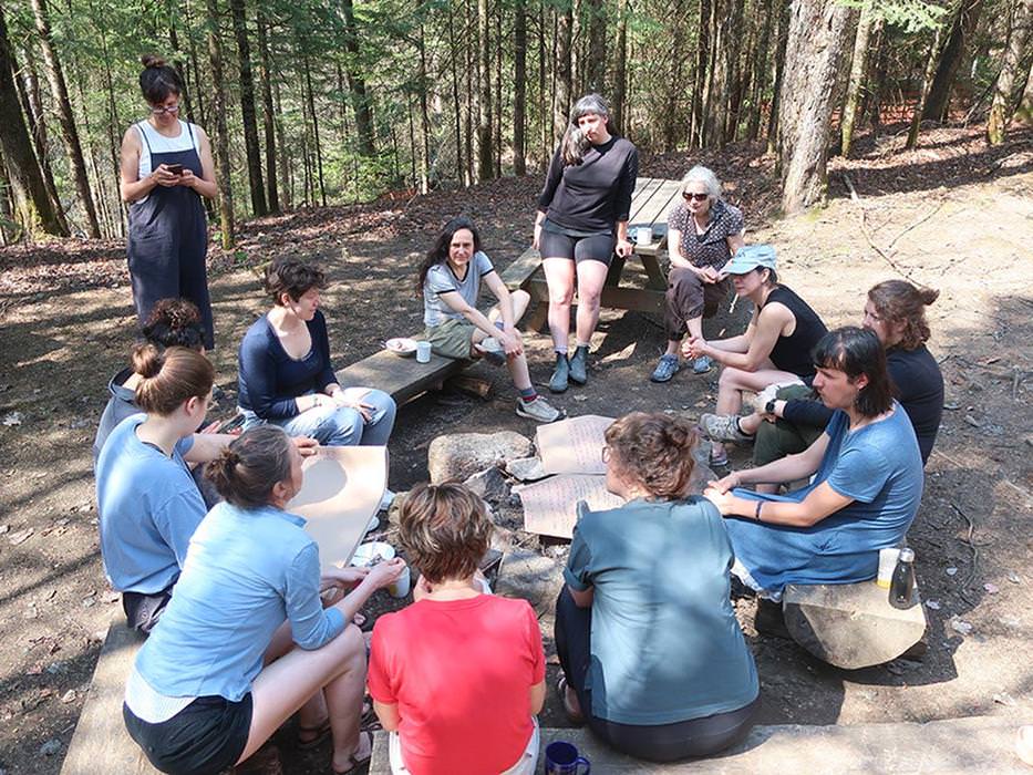 This edition of Fabuler l'école in the "Green Classroom" formula, continues the DARE-DARE cyclical experimental school project. This third workshop event took place over 3 days in the open air, gathering a group of approximatively 15 people to imagine and experience alternative pedagogies. Anchored in a non-urban context, it aims to distance ourselves from our domestic and everyday spaces in order to fully engage in collective experience in nature, to experiment with other forms of public space and to question the influence of context on exchange and transmission.