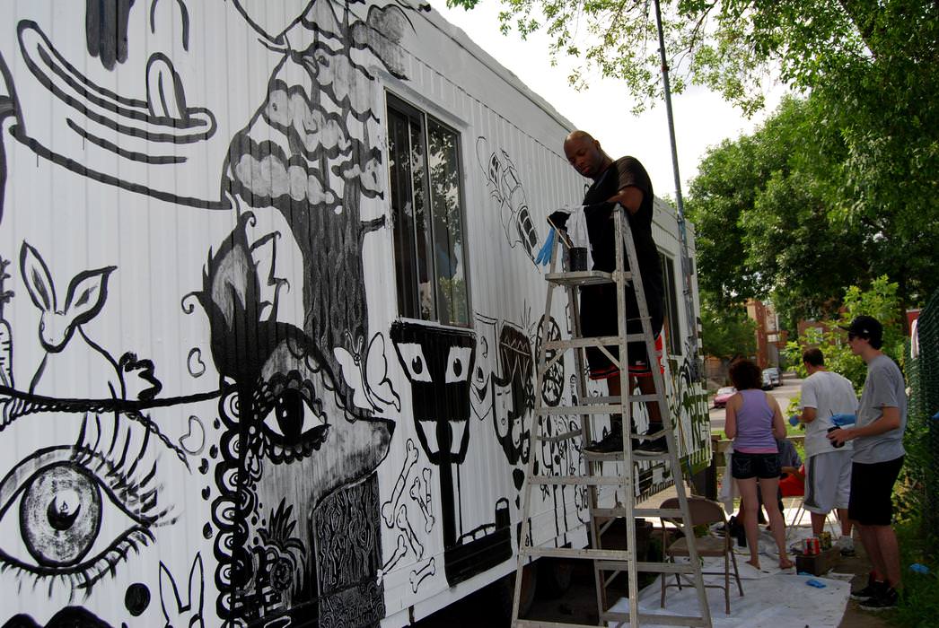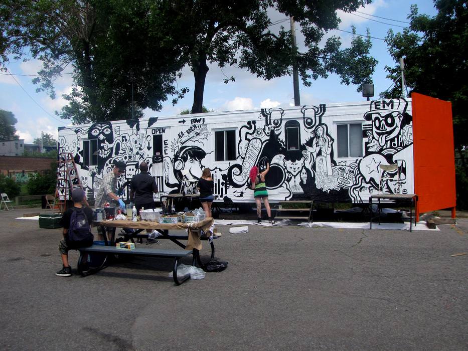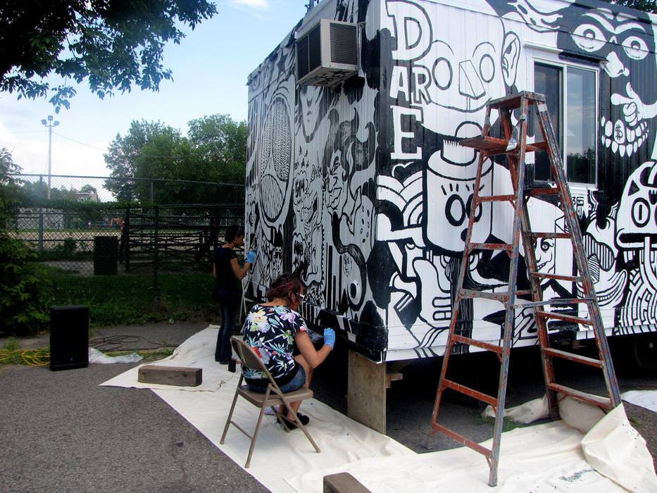 The GRAF'Roulotte project involves creating a collective mural on the exterior surfaces of DARE-DARE's mobile shelter. To achieve this, DARE-DARE approached two community organizations - Oxy Jeunes and Innovation Jeunes - whose mandate is to provide teenagers with access to artistic practice and culture as a lever for empowerment, self-fulfillment and social inclusion, as well as the professional artist collective EN MASSE, who will act as cultural mediators and mentors for 10 selected participants.