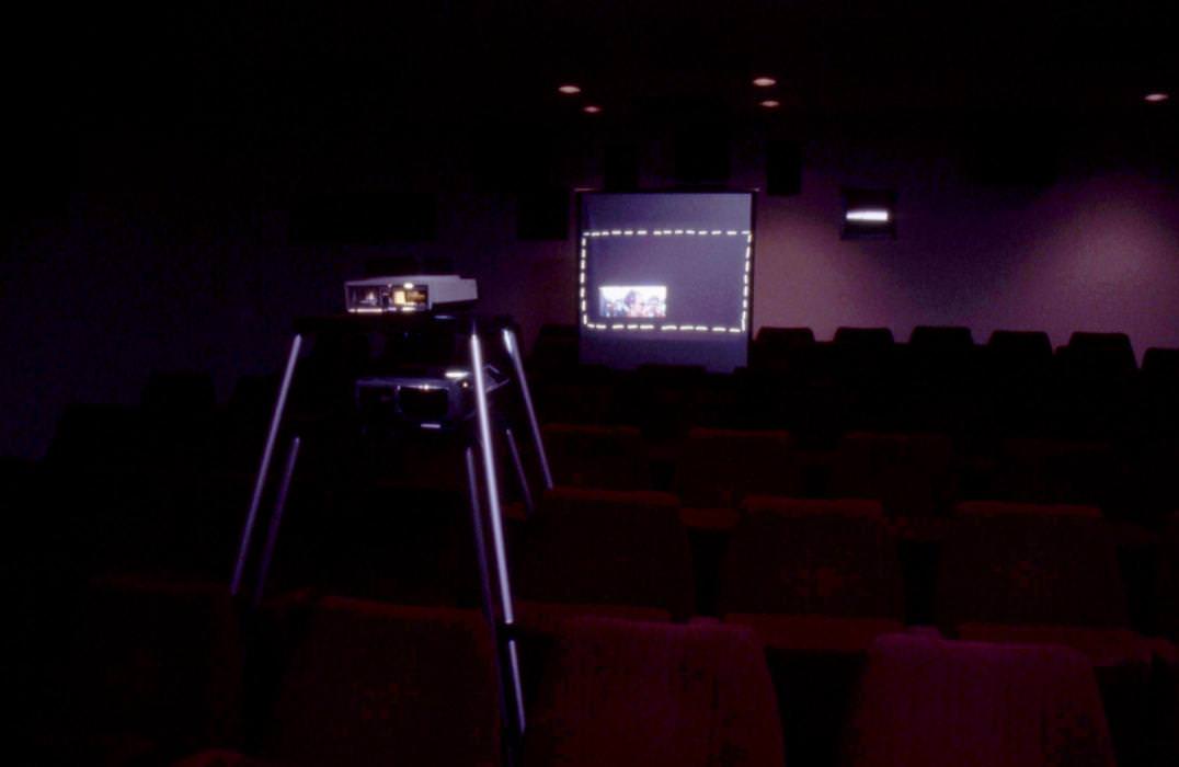 Entre nous deux... is a site-specific intervention exploring human relationships through cinema, and more specifically through the shared experience of watching a film. Movie theaters are places where we forget ourselves. Moviegoers laugh or cry together. For the duration of a film, strangers meet in the dark, bound together by a temporary intimacy.