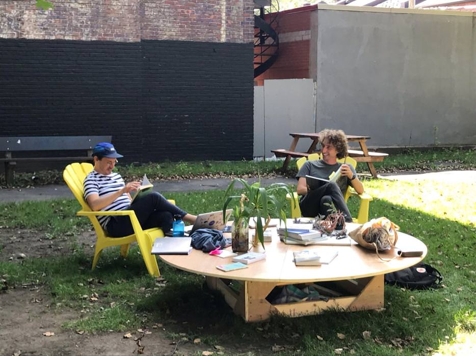 The research that the collective is proposing to pursue at DARE-DARE focuses on affects in art and its discourses, reflecting on the materiality and relational dimension of reading. The idea is to question how reading is experienced as a practice in the public space. For it is both the collection of ideas and concrete relationships to things, places and people with whom and from whom one surrounds oneself to read and from which one makes use of the text.