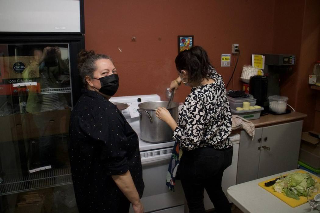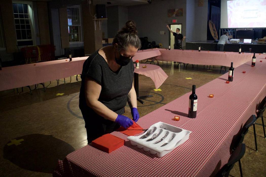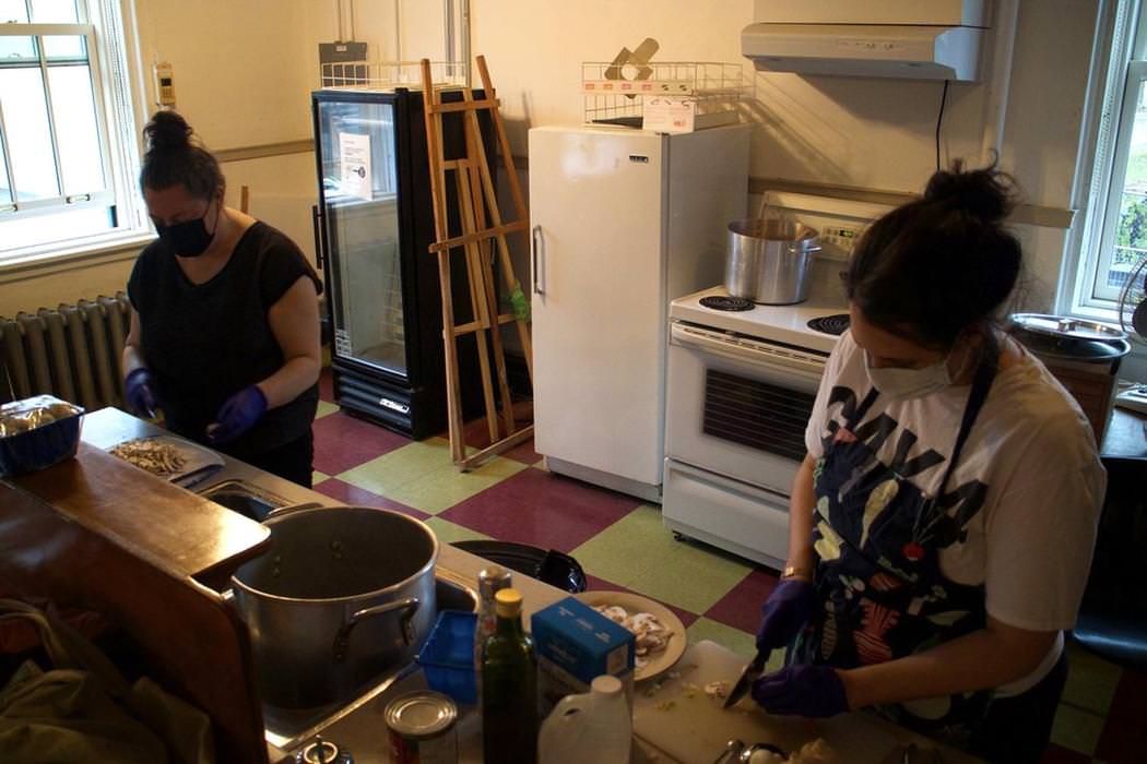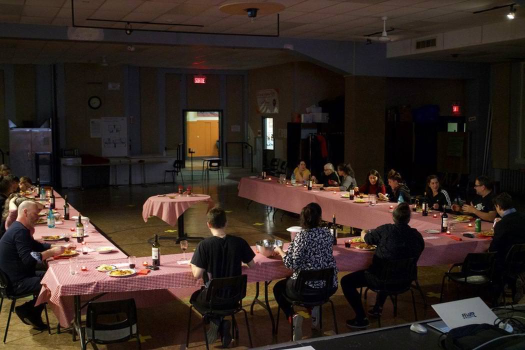 Meal with the curators Amber Berson and Manon Tourigny and the dissemination of printed copies of the zine "Souper Spaghetti".
