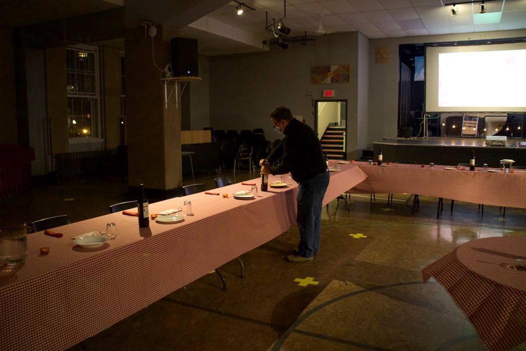 The artists hosted guests for a meal and conversation in DARE-DARE's new environment, the Adult Education Centre (AEC) in Saint-Henri. The meal was concocted by Amber and Manon from a recipe in a collective cookbook of their creation. This booklet is about food, cooking and everyday life in times of pandemic... and in times of duology.