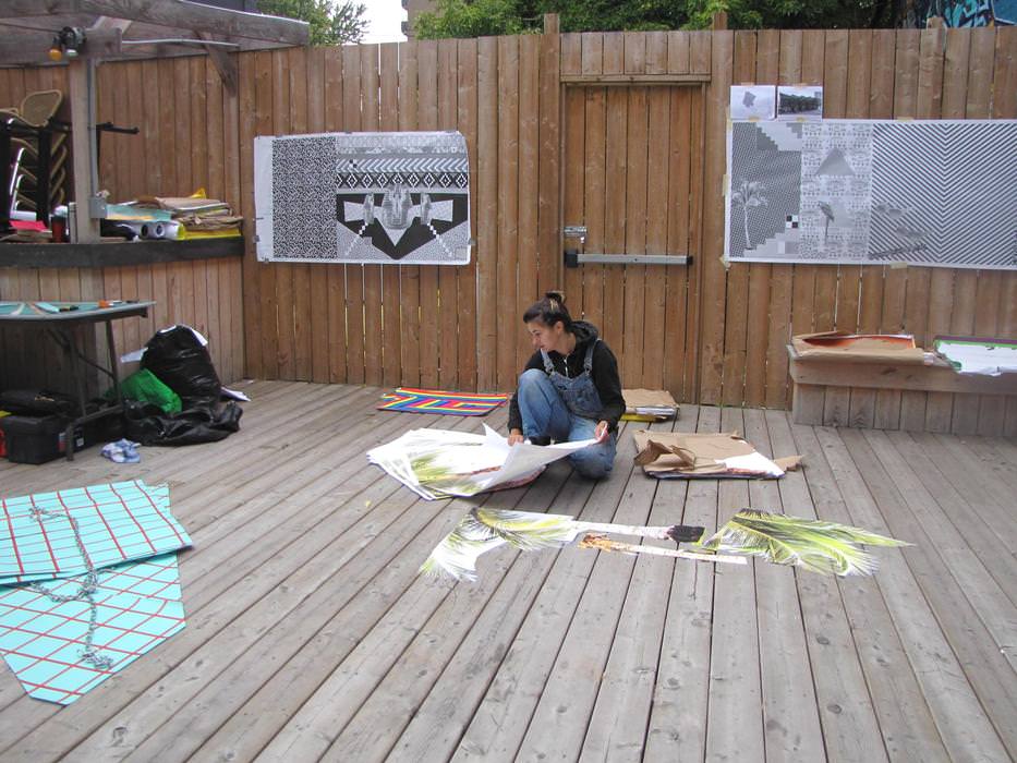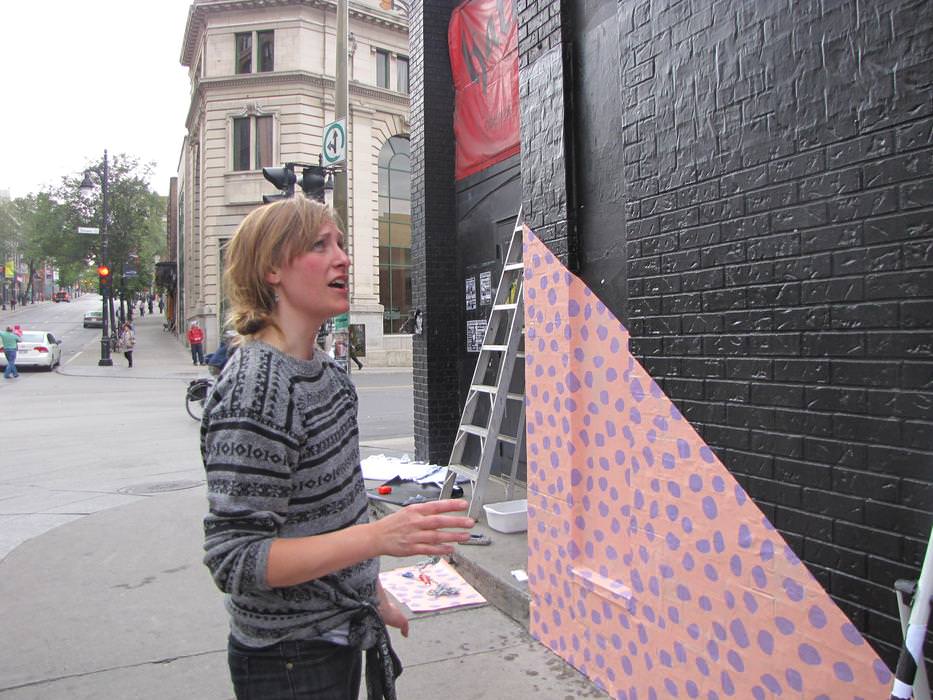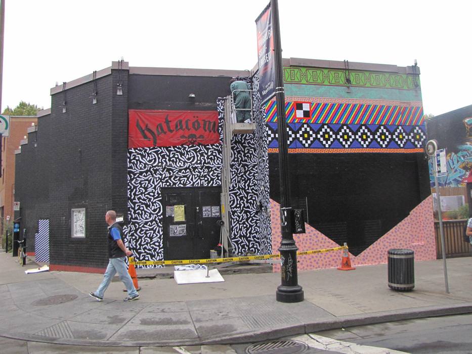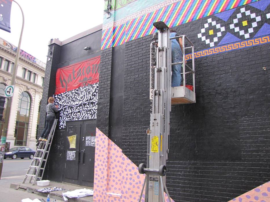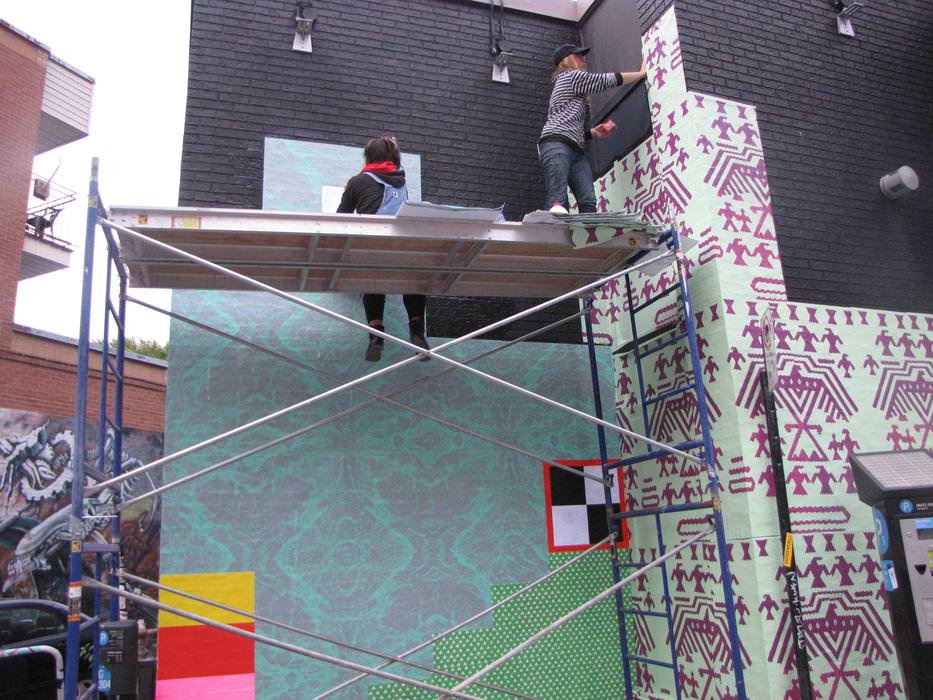 Ce projet monumental de l’artiste visuelle Dominique Pétrin consiste à recouvrir de papier imprimé et découpé la surface extérieure de l’immeuble des Katacombes. Cette installation éphémère est réalisée à partir d’impressions sérigraphiques originales conçues par l’artiste.