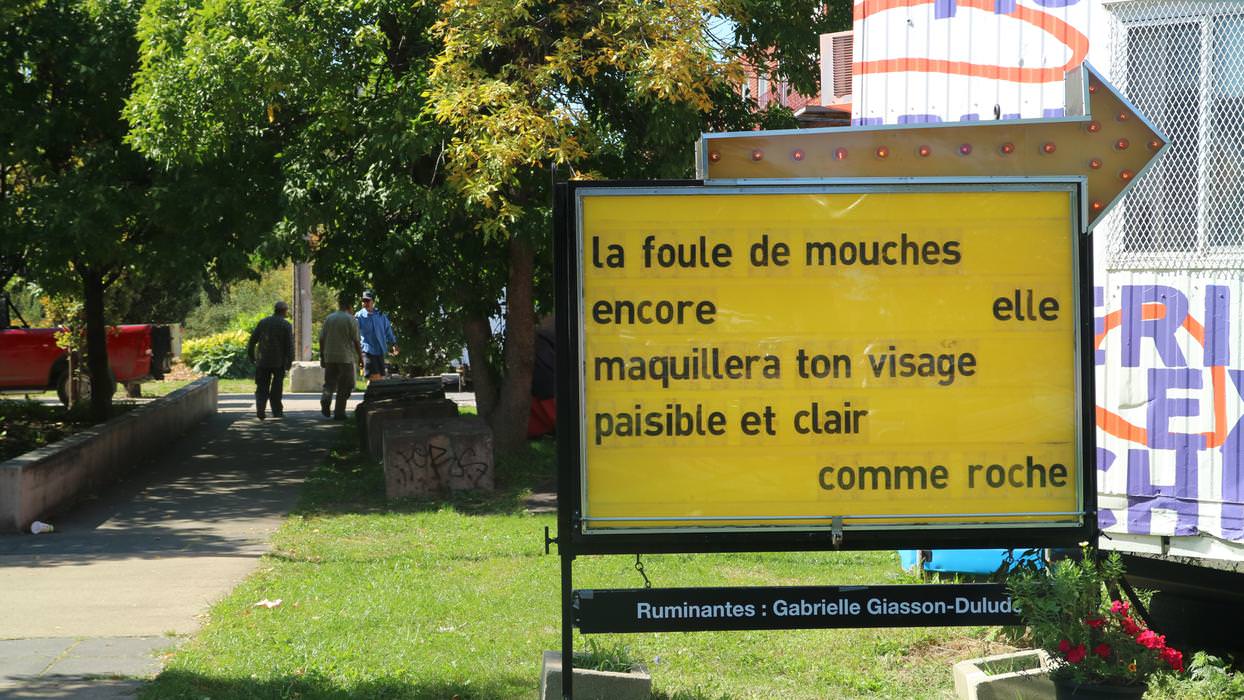 Sur le panneau, se coucheront des bêtes, des bêtes un peu endormies, à l’écoute du mouvement d’aller et de retour de leurs estomacs, des ruminantes occupées à se tenir debout, ou couchées, comme si elles n’avaient que cela à faire : habiter, digérer, faire vibrer leurs cordes. Et répéter - peut-être exercer - les gestes intérieurs. J’écrirai l’acte de ruminer, ça durera un temps, celui du panneau, quand le moment sera venu, je ne me préoccuperai que de quitter un lieu pour un autre, répondant chaque fois à la voix qui chante au loin - et résonne en soi - quand elle appelle son troupeau.