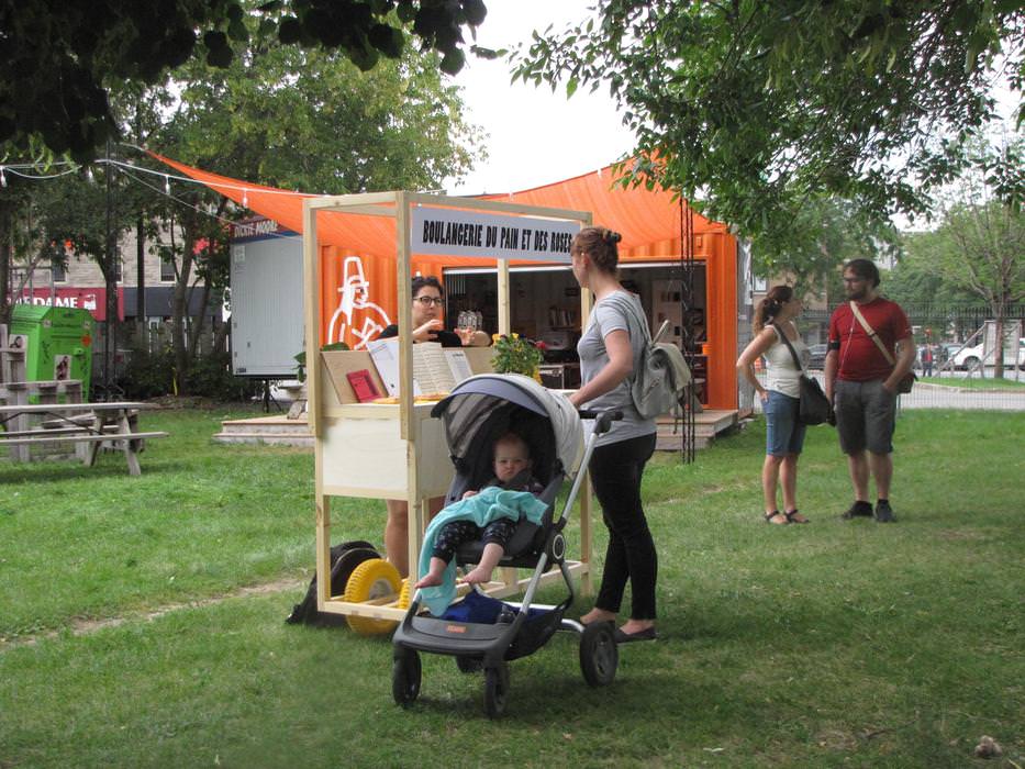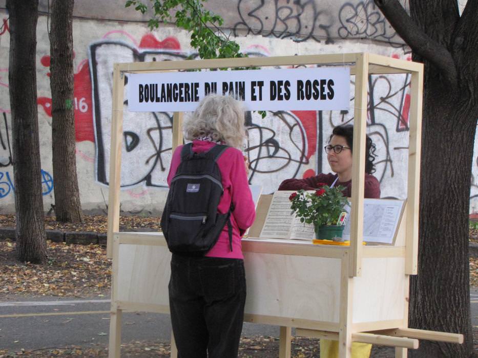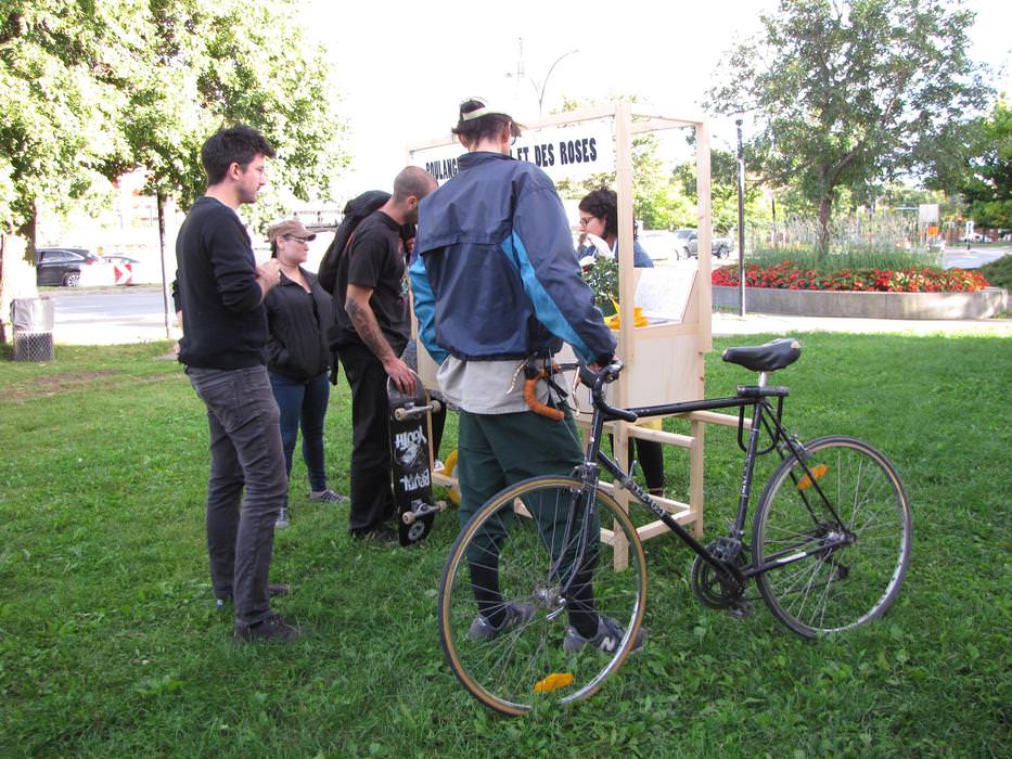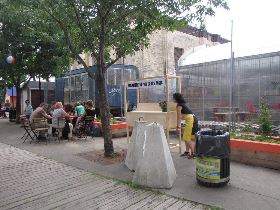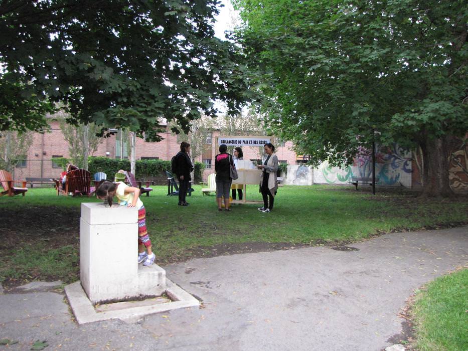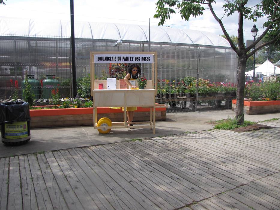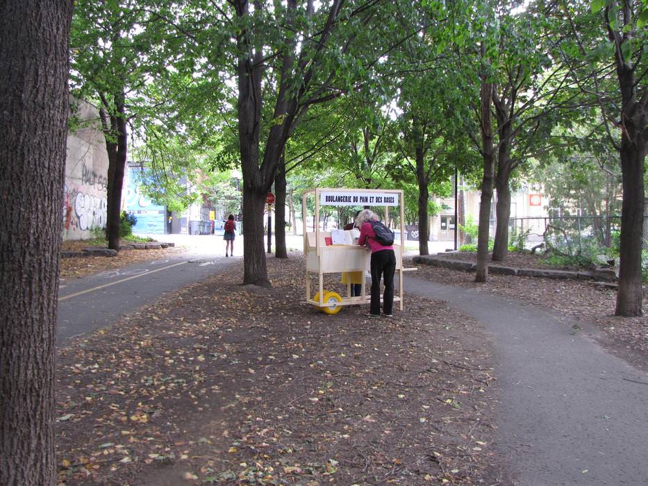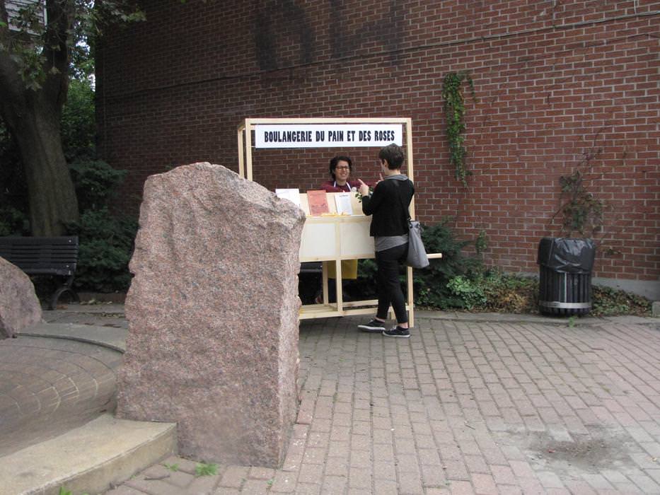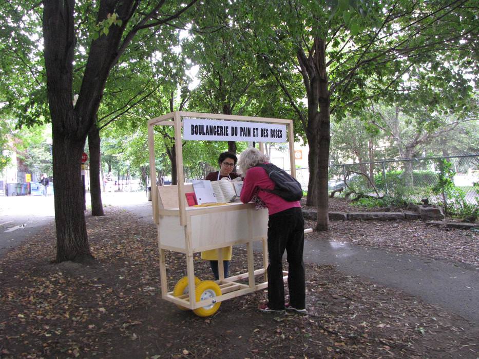 The Bread and Roses Bakery is a mobile platform to encourage discussion in public spaces about the working conditions of artists and cultural workers in the Saint-Henri district, through bread and other artistic events. Following the deindustrialisation of Montreal, which began in the 1960s, artists replaced workers in several industrial buildings by using them as workshop spaces. However, with the gradual increase in rents that operates in the neighborhood, as in other parts of Montreal, workshops located in, among others, the RCA and the Lachine Canal Complex are becoming less and less affordable, an essential component to be able to work. The slogan "bread and roses", chanted in several workers' popular struggles of the 20th century, and taken up again in 1995 at the March Against Poverty organized by the women's groups of Quebec, is still valid to claim better conditions of work for the artisans of culture. As an artist, we ask for bread, but also for roses, which is a higher quality of life related to our livelihood.