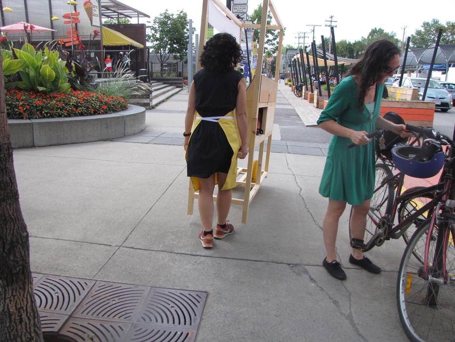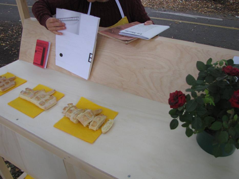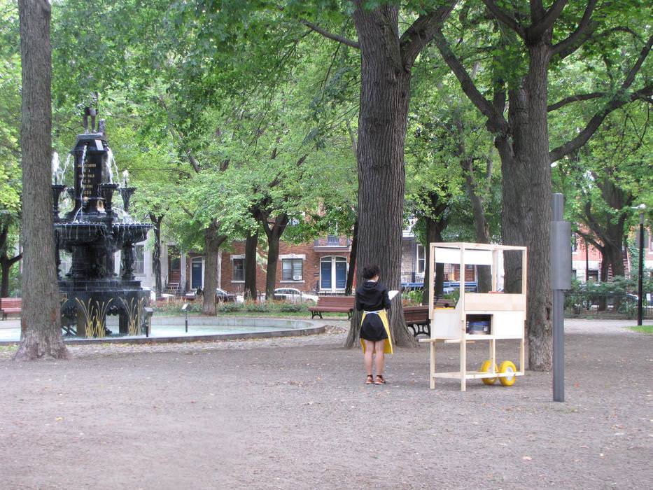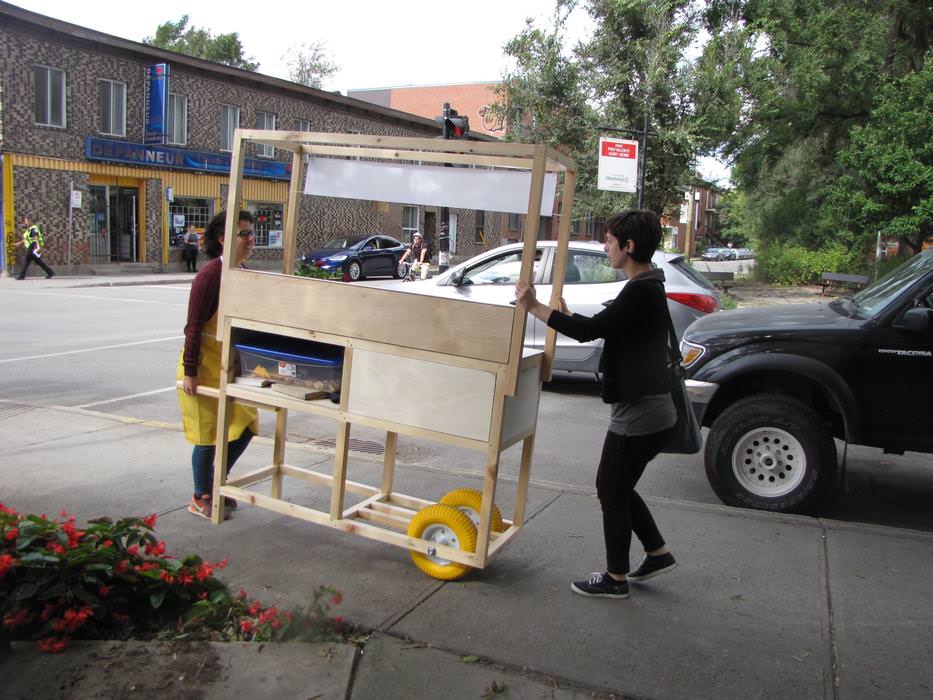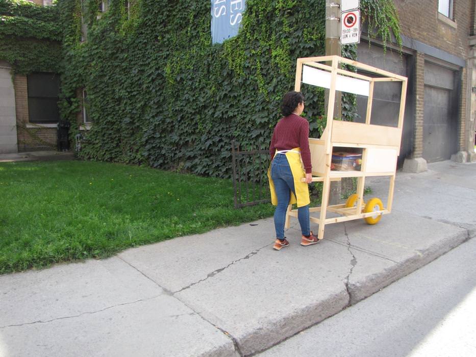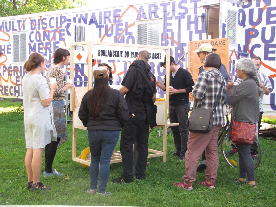The project is a mobile platform to encourage discussion in public spaces about the working conditions of artists and cultural workers in the Saint-Henri district, through bread and other artistic events.
