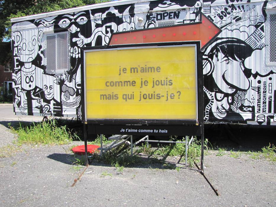 Entitled Je t'aime comme tu hais, this project reinterprets the slogan “I love myself the way I am”. Well-used in marketing campaigns targeting women to sell products and ideologies related to well-being, that sentence often brushes off the question “Who do I love?”. To that effect, this corpus of poems includes 10 versions of the slogan where the verb “to be” has been replaced by an action verb that has the same length and rhyme. Thus, “I love myself the way I am” becomes “I love myself the way I come”. That affirmation is then attached to the reflexive question “yet who am I?” which turns into “yet who come I?”