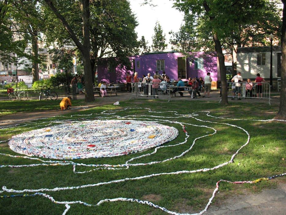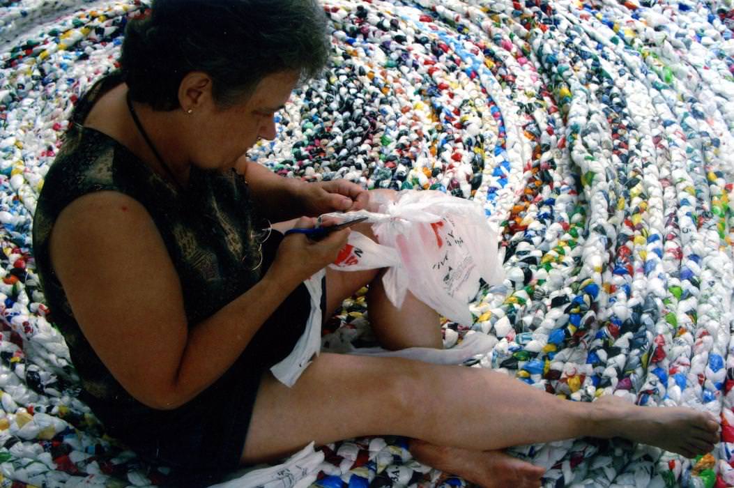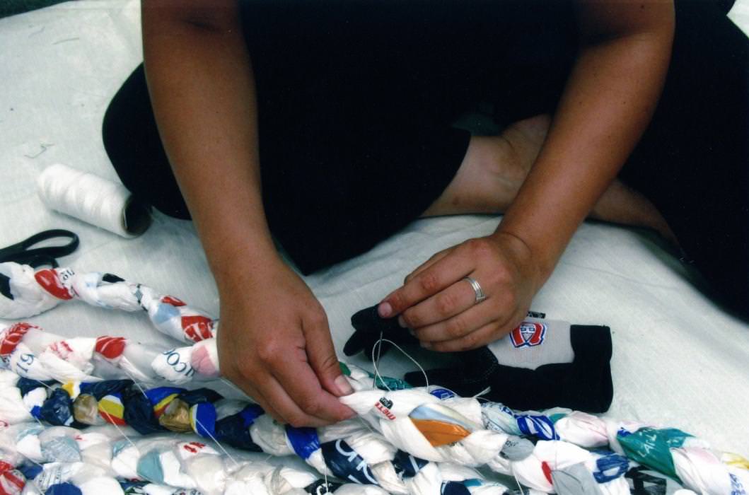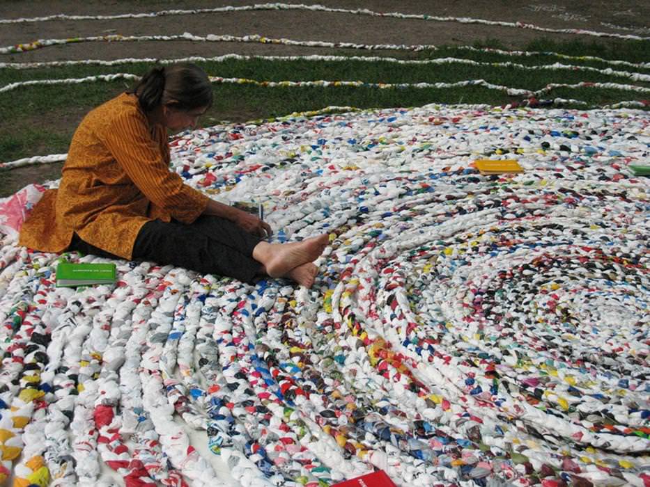 Meeting Place, inspired by the common braided rug will make use of salvaged materials, namely non-biodegradable plastic bags. Participants will weave a braid from these, which coiled will form a huge rug. Meeting Place is an invitation to experience the city in new ways and to redefine public places as grounds where we meet, exchange, and commit to common goals. The work’s title should be interpreted literally and metaphorically, the focus being as much on the process of gathering people together, as on the tangible results of their contributions.