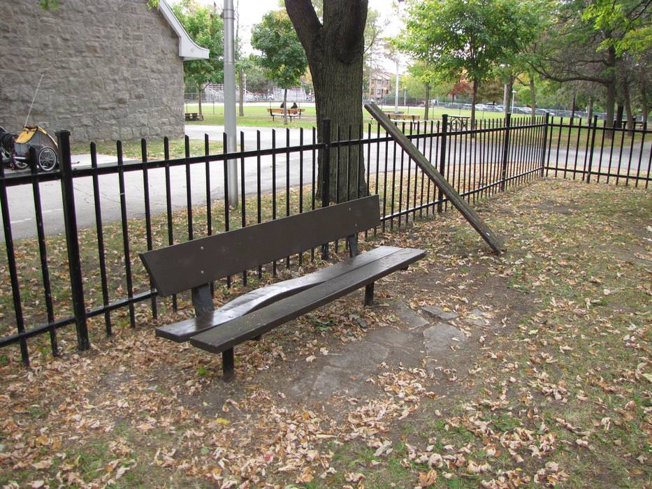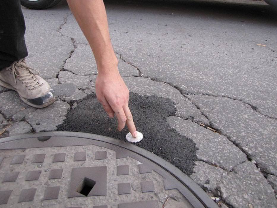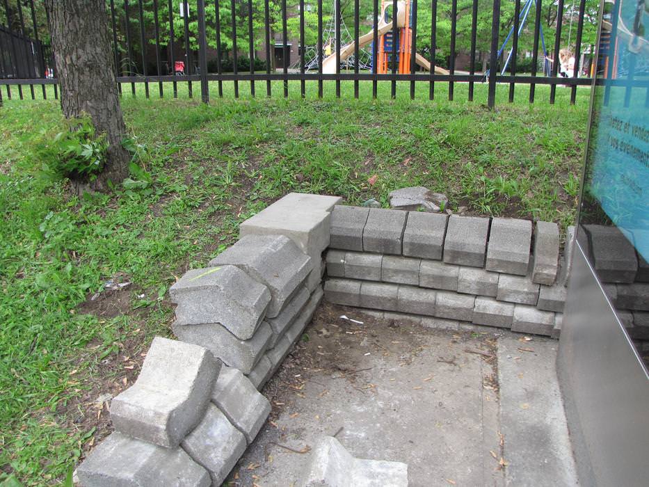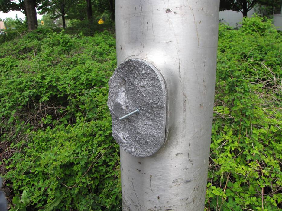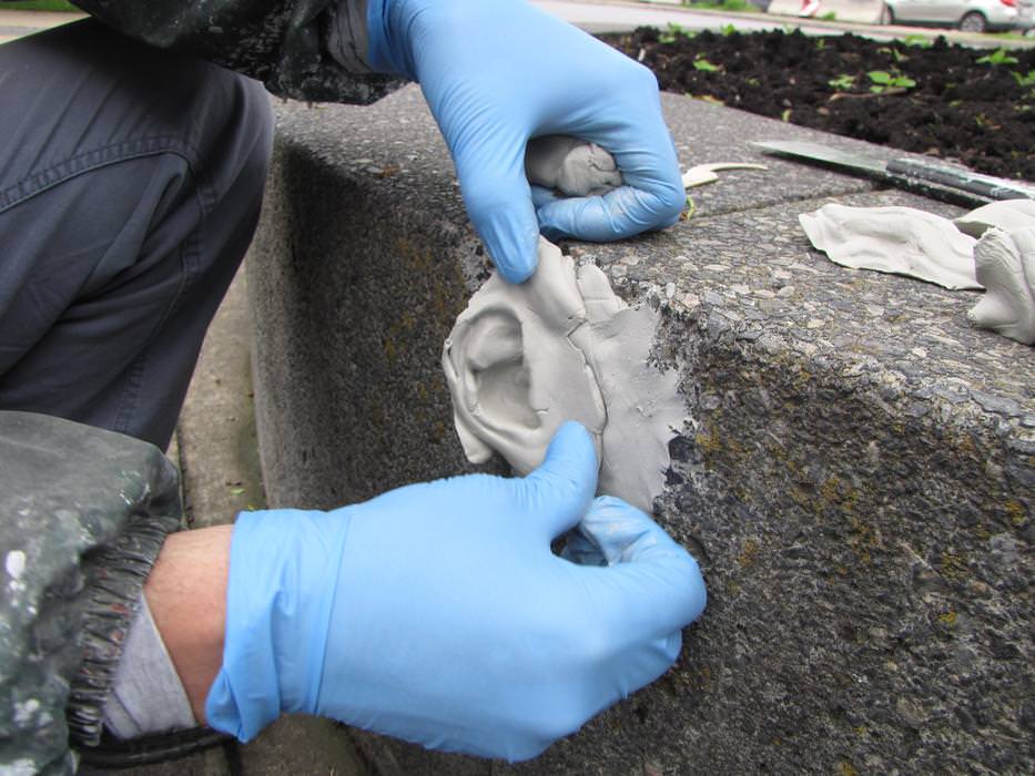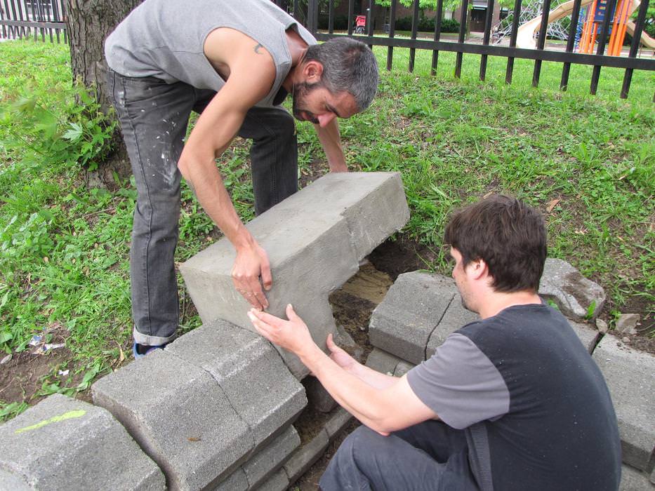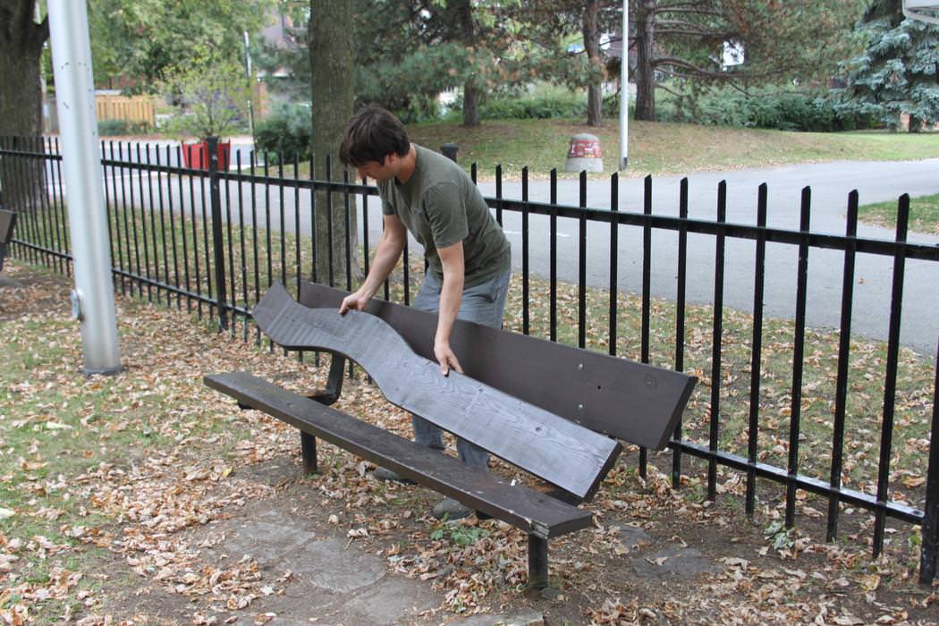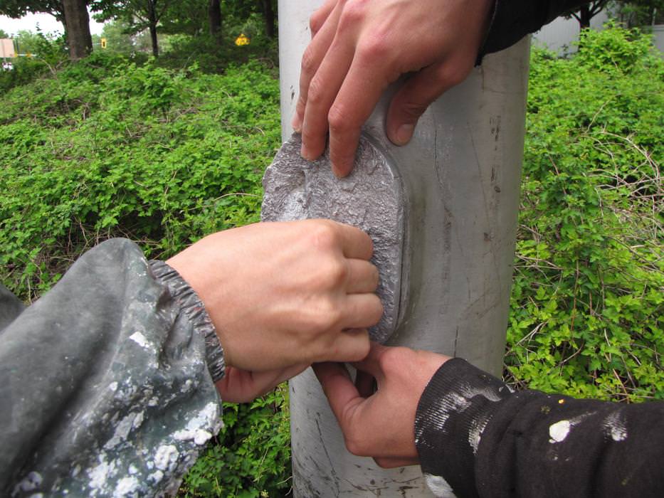 The starting point of the artwork is to locate urban furniture elements that are damaged in order to perform «repairs» on them. This operation initiates an artistic gesture where the repairing partly dictates the choice of shapes, scales and materials. The objective is to position my sculptures as prostheses replacing the missing or broken parts of selected objects.