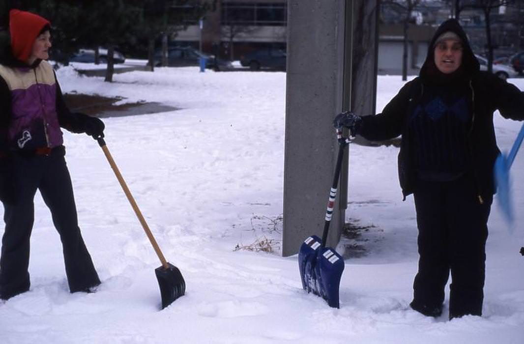For both artists, " snow shoveling " is an activity that allows them to interact with the community and the immediate environment. Shoveling the snow also serves as a means of questioning the more traditional forms of artistic creation. Their performance project fits freely into the contextual public art and tradition of action art, between the writings on Mierle Laderman Ukeles on « l’art de l’entretien » and the « collaborations avec la nature » of Andy Goldsworthy, or between the movement of the Internationale situationniste and the field of psychic geography in contemporary art.