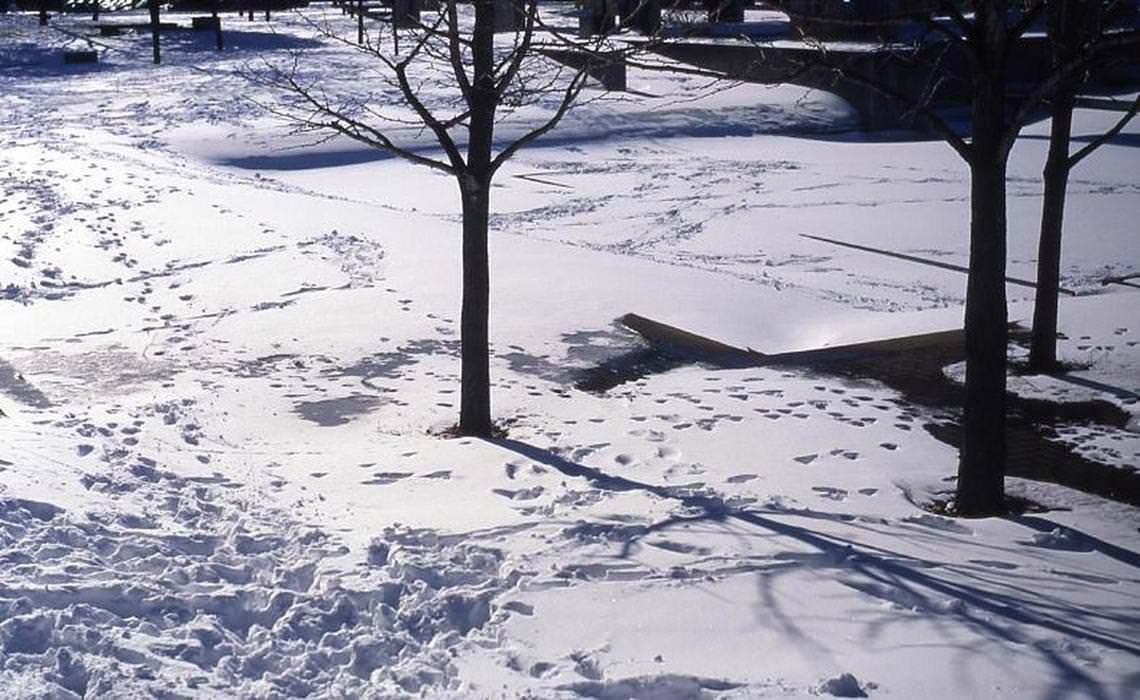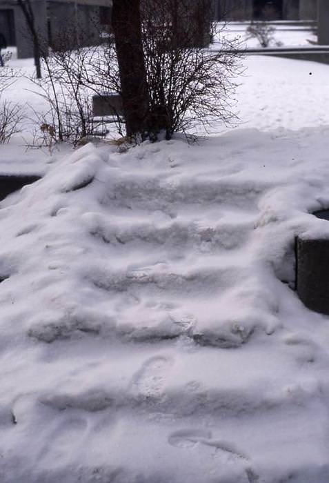 The shovels are "right on target". The small staircase carved in the snow on Viger Street, which allows one to cross the low wall that isolates Viger Square, speaks volumes about the simplicity with which prejudices about the place can be overcome. People come to see how the square looks in winter, they like to walk around it. Some people set foot there for the first time... Opposite, the disused Saint-Sauveur church attracts attention. One can see a motif carved into the snowy steps of the square - a traditional public space, if ever there was one - that recalls forgotten ways of life and collective values. Two streets away, the monumental staircase of the National Archives is enhanced by a checkerboard pattern: the work of idle civil servants? We can't wait to see how the "serious" people who preserve and interpret our personal and collective histories will climb the stairs.