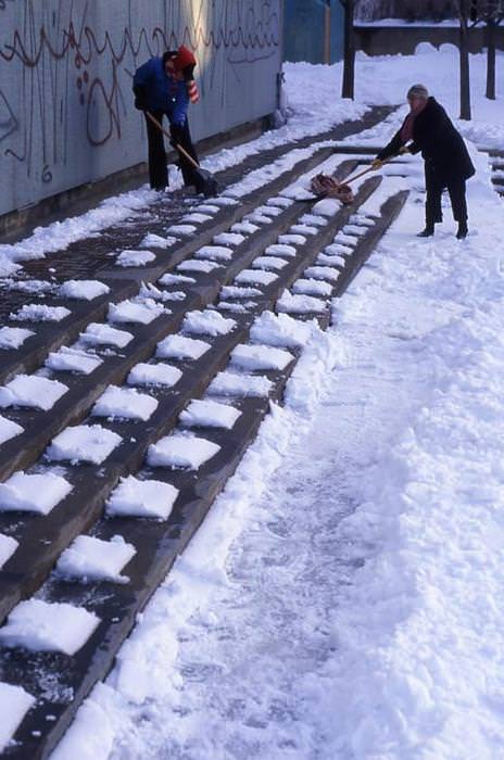 Thus, the work of Jickling and Salez questions the way in which the city "maintains itself". How do the public actions of the municipality and the individual actions of citizens interact to change the appearance and functioning of public and private places? The simple activity of shoveling takes on a dimension where the common place that is the city is subject to abandonment, claims, appropriation, and negotiation. The place is hindered, diverted from its meaning or its use, it is embellished. The shovels draw attention to the whole as much as to the detail, they authorize funny behaviors, they propose role playing.