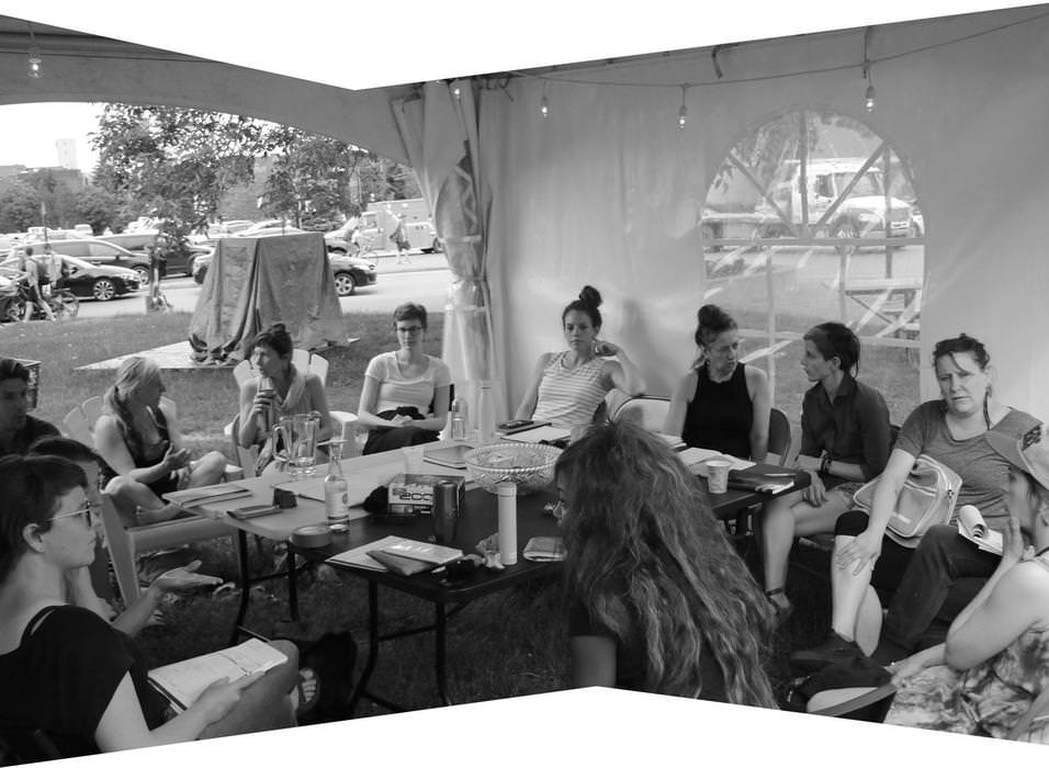 Ce laboratoire se fonde sur le désir de réfléchir ensemble à l’engagement par l’art ou par d’autres activités, à la dimension processuelle des pratiques et aux manières d’occuper les espaces publics et privés dans une perspective décoloniale. Dans les circonstances actuelles, les membres du comité Espace critique ont ressenti le besoin, plus que jamais, de Fabuler l’école. Le comité cherche des façons de reconstruire des relations humaines significatives en cette longue période de confinement; de résister au recours par défaut aux plateformes numériques (médias sociaux, applications de visioconférences); et de réfléchir aux nouvelles manières d’allier création, action, intelligence collective, militantisme et distanciation physique. Comment penser les modes de transmission et faire des apprentissages de manière alternative? Comment être ensemble? Comment agir en solidarité? Comment circuler et occuper l’espace public?