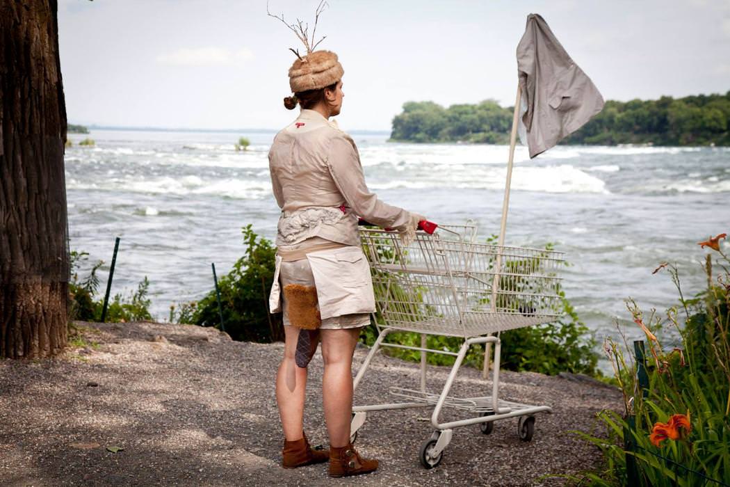 Je me sens attirée par les voyages en canot et à pied d'abord effectués par les premières nations puis les coureurs des bois impliqués dans le commerce de la fourrure, une façon de voyager si respectueuse de la nature. Comme artiste de la performance, j'imagine l'épreuve physique que représente une traversée de plusieurs jours à raison de 15 heures par jours. Le confort qui domine mon mode de vie, l'accessibilité presque instantanée à n'importe qu'elle ressource à travers le monde me semble plus dangereux encore que de sauter les rapides. Afin de commémorer l'importance des cours d'eau dans notre vie, de réfléchir à leur transformation ainsi qu'à ceux qui les ont traversé et y ont parfois donné leur vie, je compte dédier la première des trois semaines de déambulation avec un panier d'épicerie, à l'eau et aux Hommes. Pour chacune des journées, je souhaite être accompagnée d'un ou plusieurs compagnon(s) de voyage.