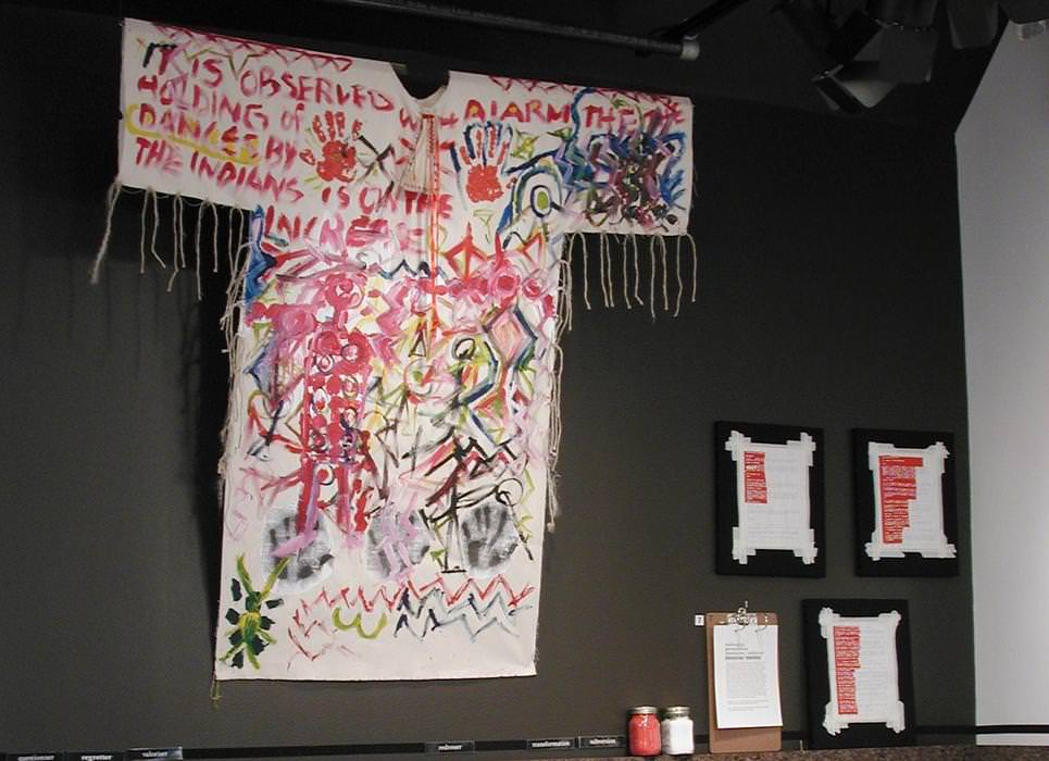 À travers la démarche artistique attentive de Nadia Myre, qui reprend la technique traditionnelle du perlage pour oblitérer le texte de la Loi sur les Indiens, une révélation s'actualise et jette un éclairage radical sur le clivage entre l'intention légaliste et la réalité.