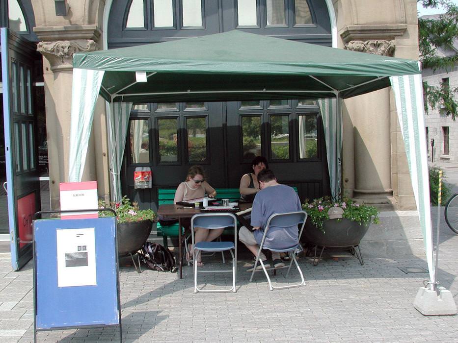 Remblai-déblai, VLAN paysages, soirée de poésie à l'installation extérieure sur la rue Léo-Pariseau au coin de l'avenue du Parc, au bord de l'échangeur