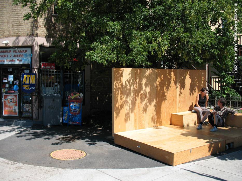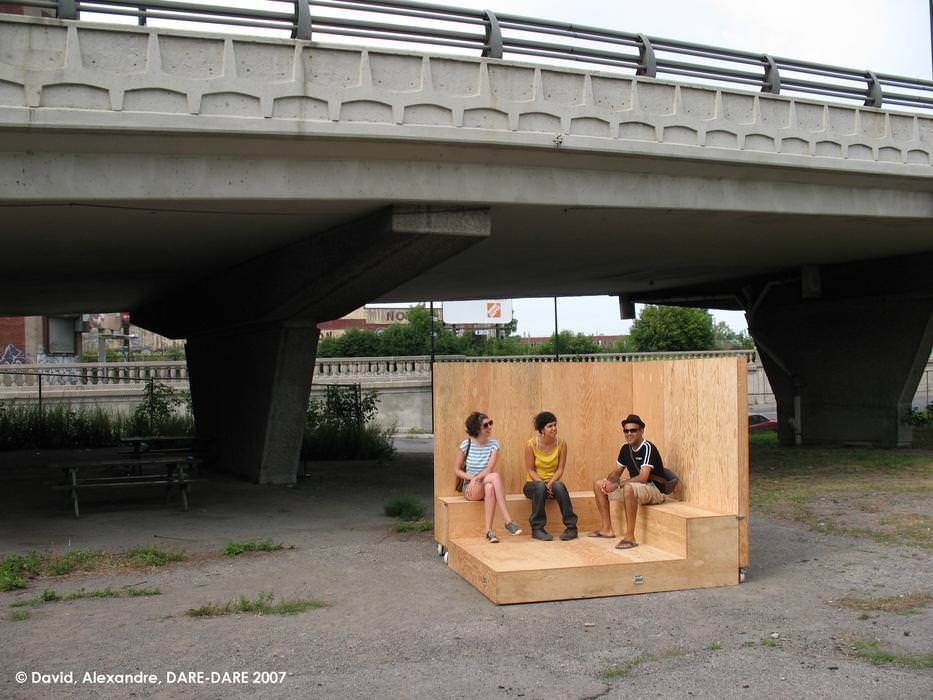 To the notion of informal use, which relates rather to the object deployed and momentarily fixed in one place, one could add that of poor use to describe the relationship between the object and its own mobility. The Franciscans, to whom we owe this expression, refused not only the property, but also opposed that their use of the property is marked by the law (for example, the regulation concerning the prohibition of the dogs in the Viger and Émilie-Gamelin parks in the Ville-Marie borough seem to be aimed primarily at eliminating the presence of homeless people who have dogs). If we dismiss this notion of a usage without right on the space of the city, it allows us to refuse an organization of the city which seeks a conformity between types of places and corresponding attitudes. Each of us places places of personal importance and each one adapts differently to the places already invested by a community. For the artist, this project is an attempt to sneak between sharing places more or less determined by oneself and others. (For an additional discussion, see a minor biopolitics, interview with Giorgio Agamben directed by Stany Grelet and Mathieu Potte-Bonneville, Din 10, Winter 2000.)