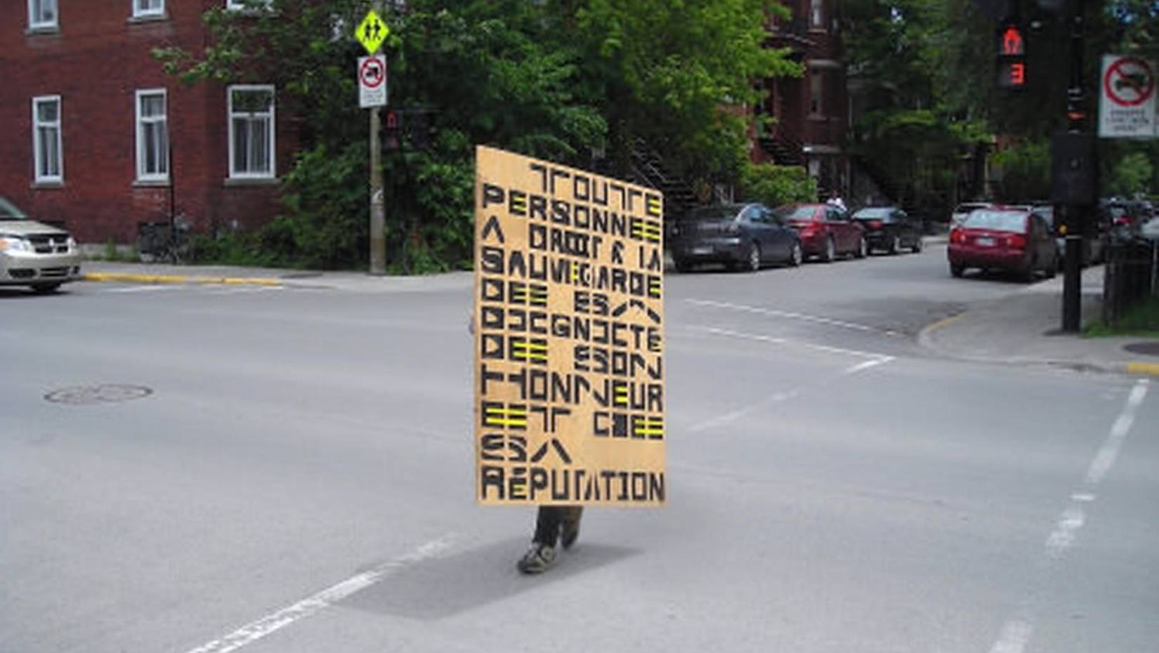 karen elaine spencer propose de disséminer dans l’espace public des extraits de la Charte des droits et libertés du Québec, qu’elle a retranscrits sur de grands panneaux de bois. En invitant des groupes de participant.e.s choisis à sélectionner des passages de la Charte qui résonnent particulièrement pour eux/elles, l’artiste s’approprie ensuite ces extraits afin de réaliser des écriteaux aux formats imposants, dont elle fera ensuite don à l’équipe de participant.e.s.