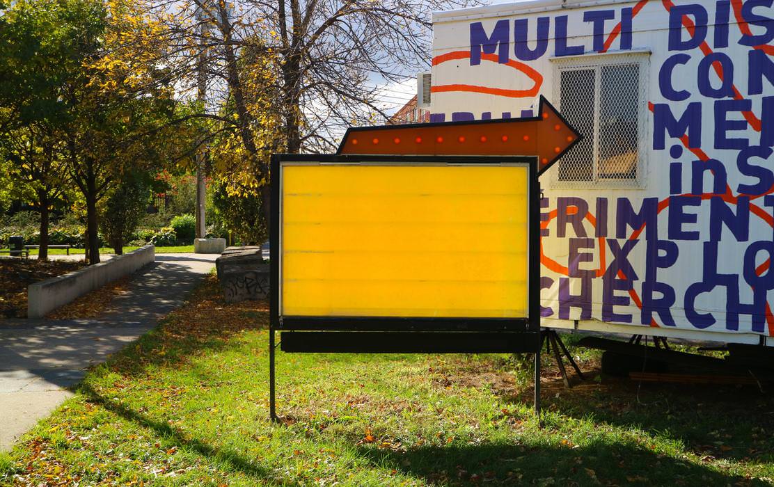 DARE-DARE forges ahead with its urban poetry/writing project. Borrowing from short form sentence structure such as slogans, haikus or tweets, these short phrases, aphorisms, poems or questions are showcased for a week's time on an illuminated sign. The texts are visible, day and night, for the thousands of passers-by that transit through the area surrounding the artist-run centre's mobile trailer.