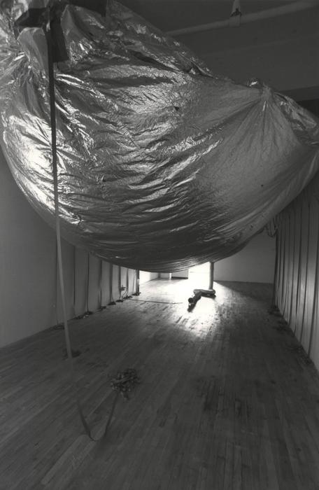 This work of sculpture intends to use the three-dimensional image of an airship as a symbol of the aspirations of a modernity. This in order to put this image in parallel with the highly symbolic character of a disused factory. Built in monumental dimensions, this simulacrum of an airship will be arranged in such a way as to occupy almost all the available space of its location.