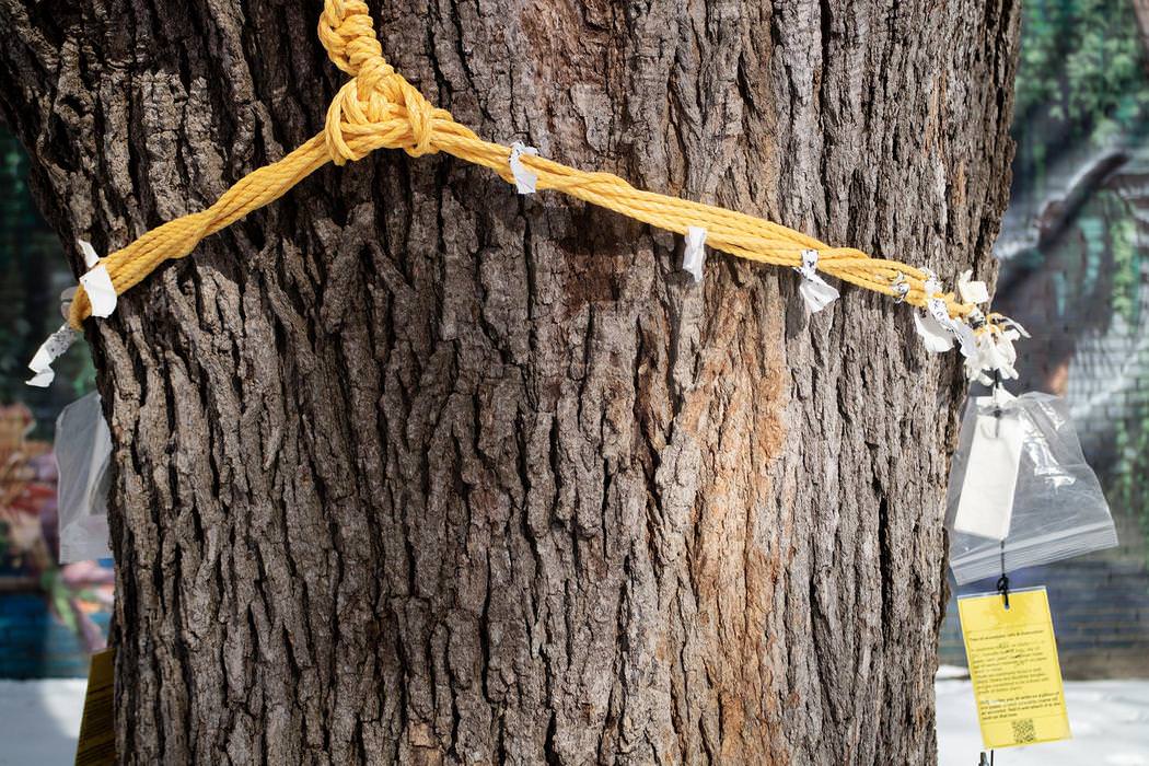 ‹on the left› is the "secret" tree where you can whisper your secret(s) in the cracks of the tree's skin, as we do in Asia ;