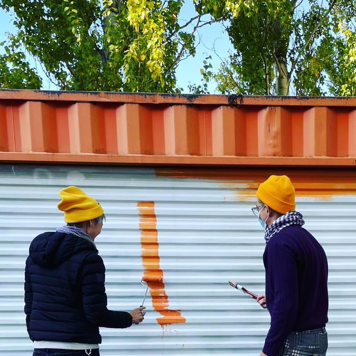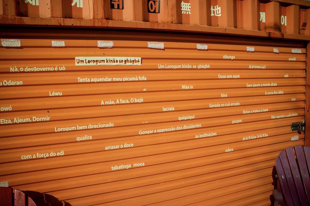 ‹behind these large trees› on the HALTE, alongside queer Korean expressions, P(b)ajubá is celebrated with a bixa poem, a performative podcast with artist renata paciullo and a bafônica i babadeira collaboration with Brazilian activist Neon Cunha. On the side of the orange container, QR codes will direct you to audio tracks.