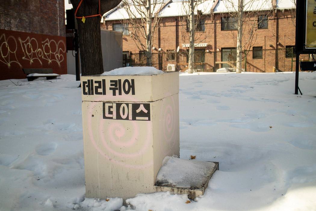 ‹on the bottom of the wooden deck› Korean queer words will appear weekly (every Wednesday) with the color code of Saekdong, a traditional Korean fabric.