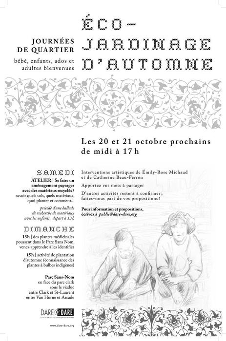 Interventions on the site of Émily Rose Michaud and Catherine Beau-Ferron and autumn eco-gardening workshops.
