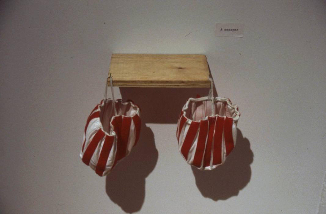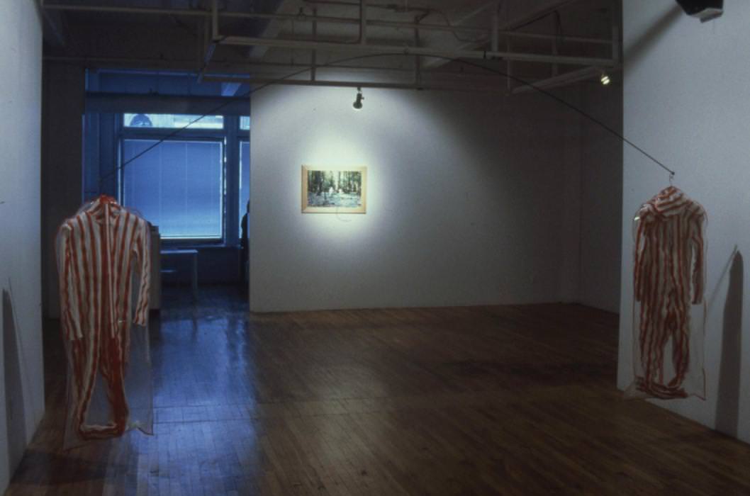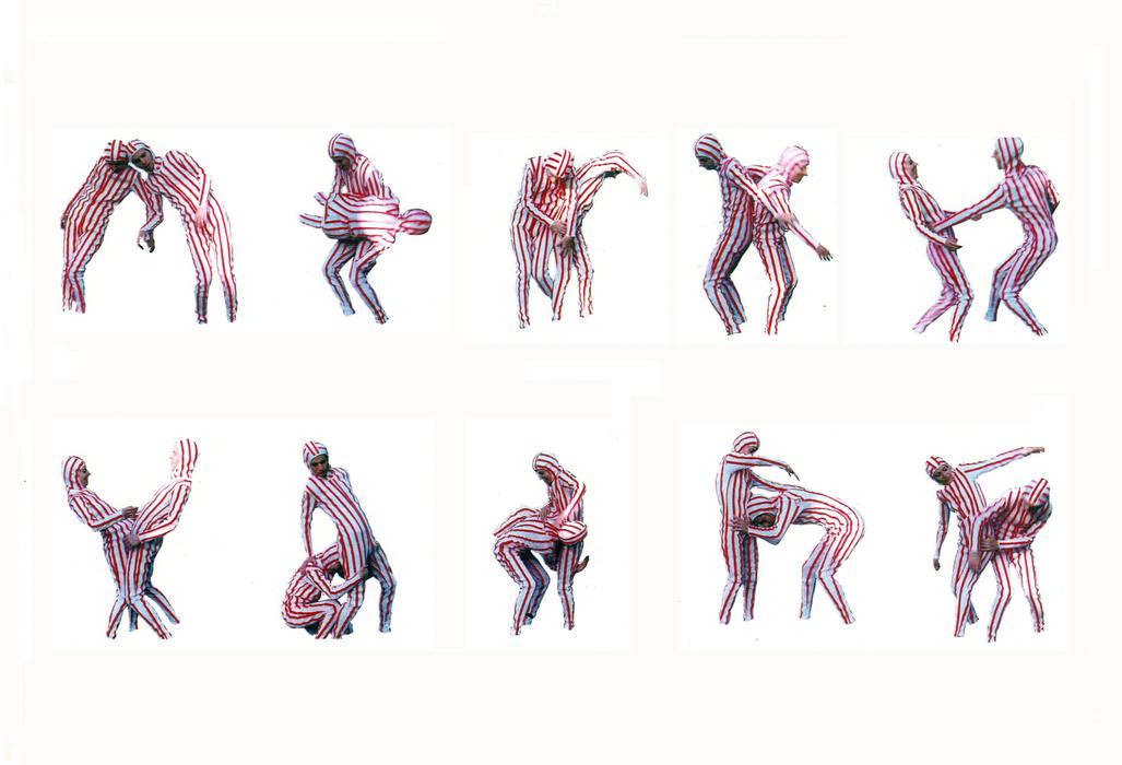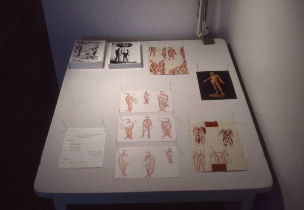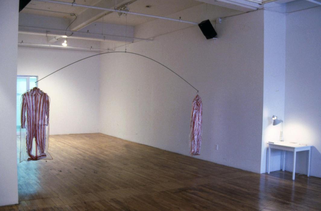 From April 2 to 11, Emanuel Licha met couples in their homes. He had them put on suits made of Velcro strips that they experimented with in their privacy, without the presence of the artist. A small tape recorder, the only witness of their movements, would record the sounds of tearing of the velcro. The artist made a sound montage entitled Les chants d'amour. This soundtrack could be heard at DARE-DARE. It accompanied an exhibition consisting of the two suits swinging in space, photos, drawings and texts referring to the flayed.