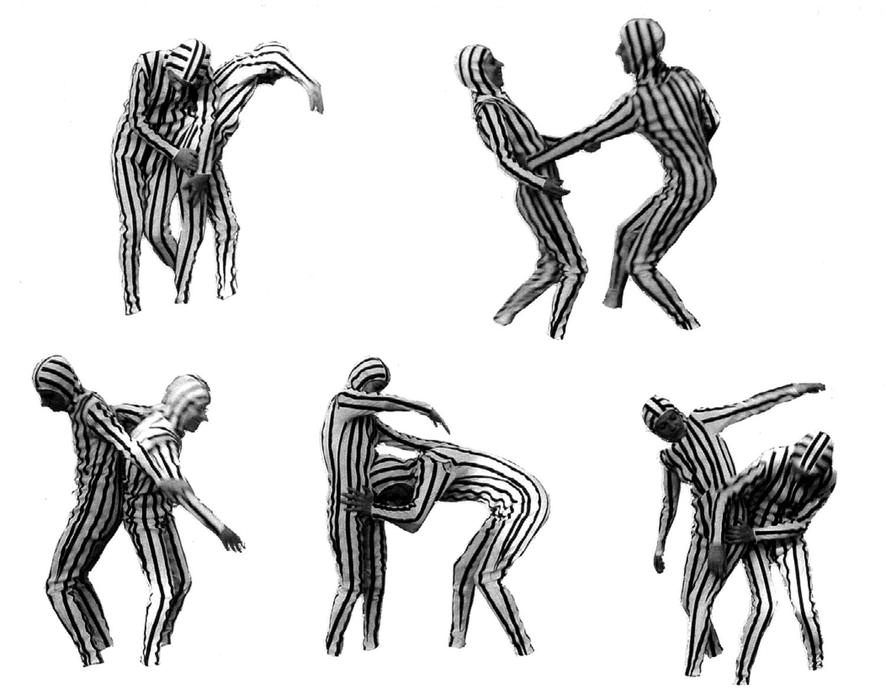 Emanuel Licha met couples in their homes. He had them put on suits made of Velcro strips that they experimented with in their privacy, without the presence of the artist.