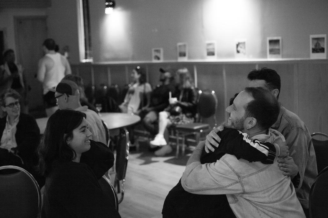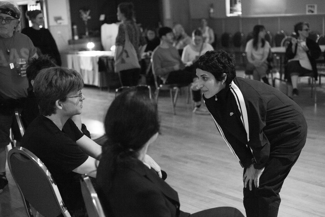 The performance The Colour of Distance is an exploration of my interest in hospitality and its cultural differences through the simple act of greeting. At the Subdury Alternative Art Fair (FAAS), June 2023, taking place at the Croatian Center, I introduced myself by saying I wasn't going to do a frontal performance. I invited people to have a drink at the venue's bar and to gather, sitting and standing, as if waiting for a show to start. I then began my infiltrating stroll by greeting everyone, one after the other, randomly, engaging in a one-on-one with the modular questions, "How do you greet people?" "How do you react to a greeting? With this unspectacular chit-chat process, we engaged in the action described together. Around 60 people were greeted. There was physical contact, body language, handshake, wave, smile, eye contact, hug, a kiss on the right cheek, two kisses: the right first, the left next for some, and the reverse for others, the touch of the shoulder, saying a word, refusing, shyness, full embrace, hello, hi, bonjour, que tal, and words I can't remember in Polish, Haitian Creole, Arabic, Farsi, among many other languages.