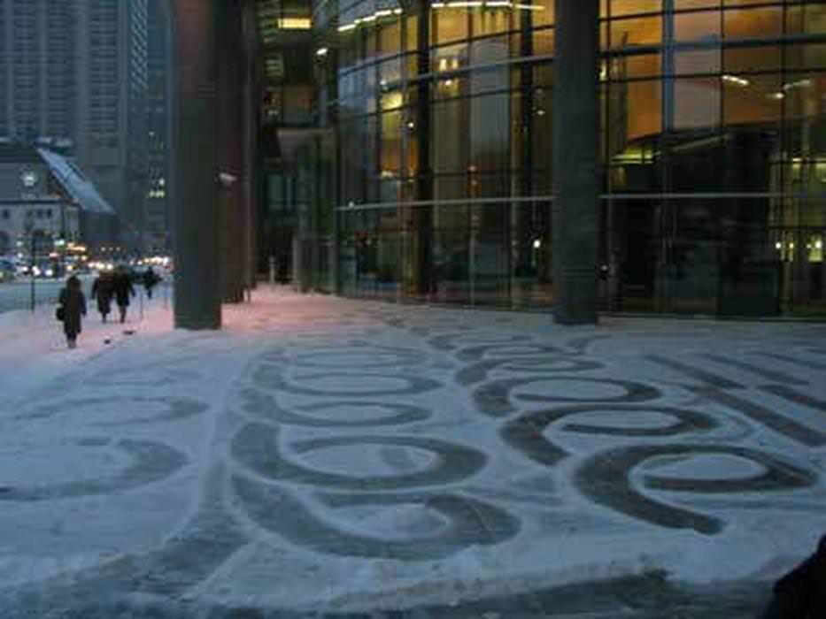 Shoveling Snow, by Yukon artists Hannah Jickling and Valerie Salez, is the second project in DARE-DARE's Dis/location: Urban Articulation Project. It follows Doug Scholes' intervention in Viger Square. Once again, the question of maintenance is addressed through an intervention sensitive to the urban "climate" of the square and its surroundings.