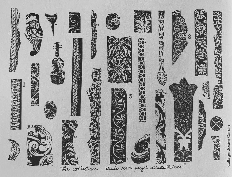 This new body of work mainly features a multitude of ceramic objects pinned to the gallery wall in the manner of a museum collection. The making of these objects was developed from a personal inventory of drawings and photographic images inspired by various moldings, artists' tools, archaeological objects and antique gilded painted frames. The installation thus stages the re-construction of paintings. In a way, this production is a collection of forms drawing on a cultural memory that encompasses several sources of reference, i.e. different places and times. This installation questions pictorial representation and its link with our memory of objects, and more specifically the relationship between the object on display and the object viewed in the context of art.