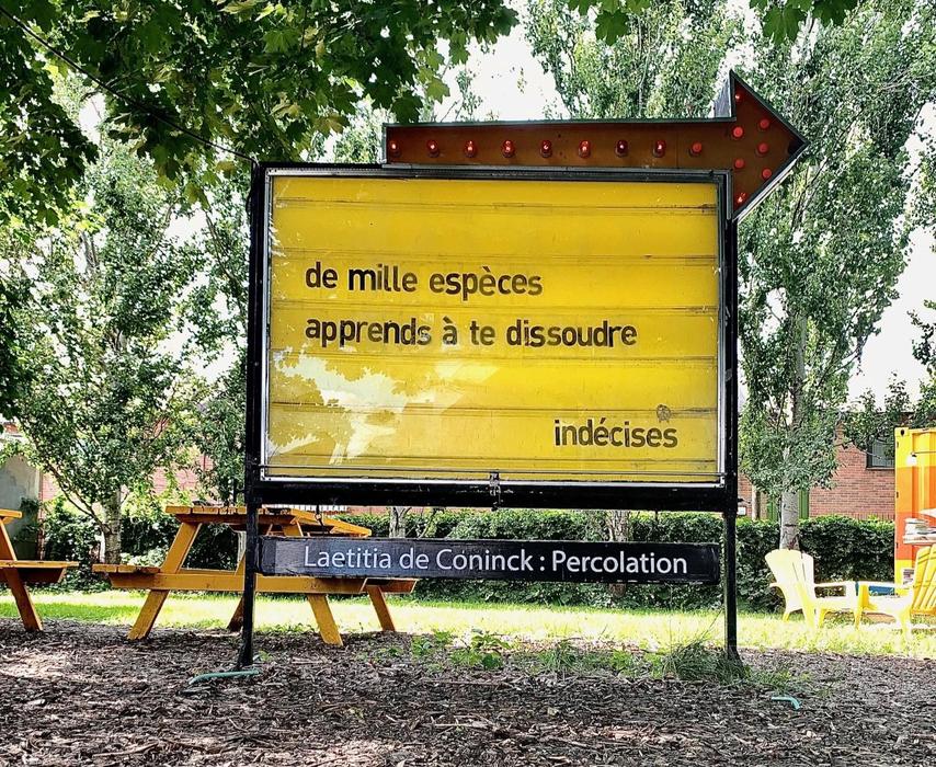 The Percolation public writing project was created from an investigation of/with Parc Sainte-Cunégonde, where knowledge and experiential knowledge are distilled and incorporated to create short texts in a geopoetic approach, an approach to places that is both sensitive and poetic.