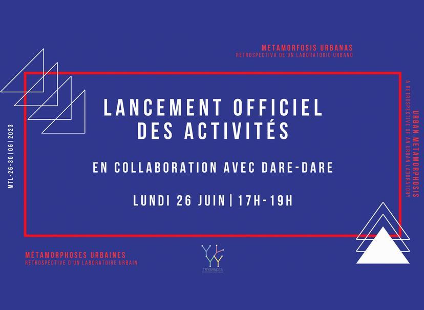 To kick off what promises to be a memorable week, TRYSPACES members and the general public are invited to join in the festive and creative launch of TRYSPACES/Urban Metamorphoses Week, which will take place in Parc Ste-Cunégonde, right next to the DARE-DARE's HALTE.