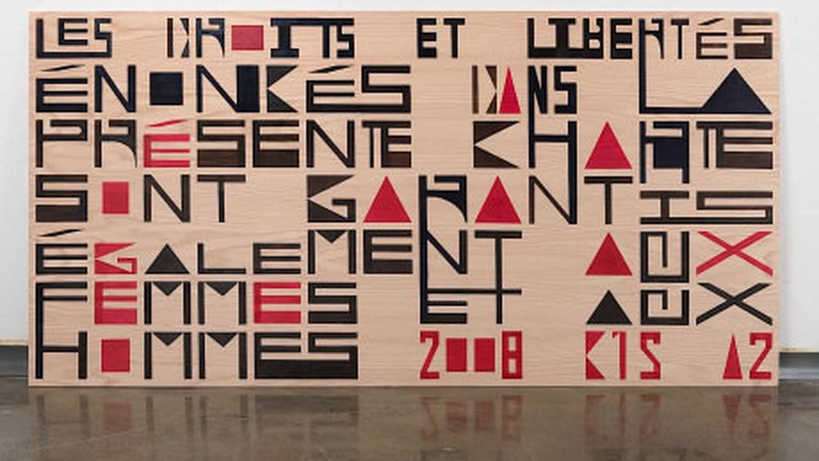By inviting groups of participants to select passages from the Charter that particularly resonate with them, the artist appropriates these excerpts to create large signs, which she will then donate to the team of participants. There will be a transfer of ownership in this transaction, as well as responsibilities assigned to it.