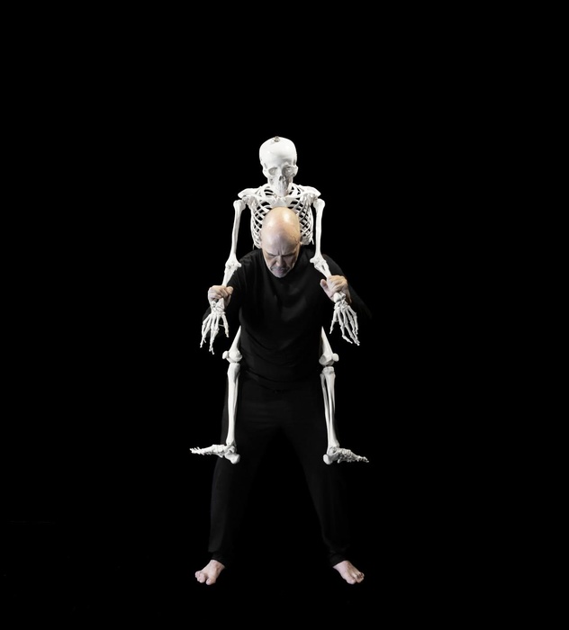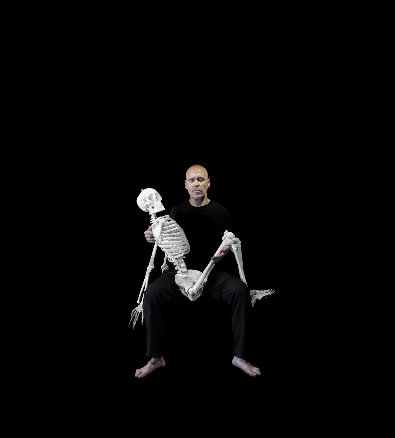Steve Giasson. Invisible Performance No. 298 (Being Loyal to the Nightmare of One’s Choice). Reenactment of Marina Abramović. Self Portrait with Skeleton. 2003. Performer: Steve Giasson. Photo credit: Martin Vinette. Photo retouching: Charles-Étienne Lebrun. SKOL Centre for Contemporary Arts. August 10, 2025.-