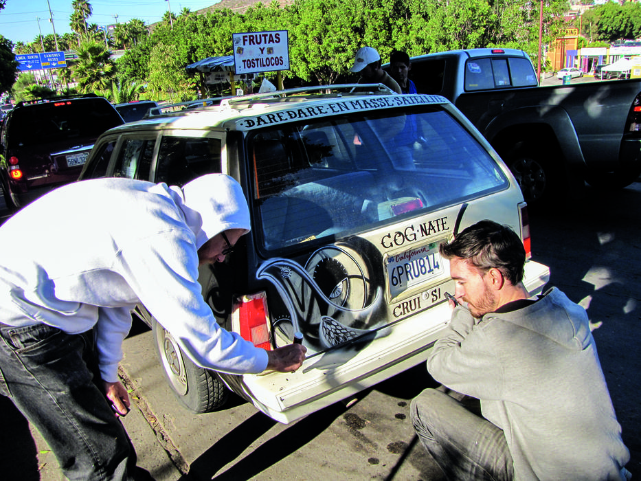 collaboration of EN MASSE and Cog•nate Collective Montreal based artist PERU DYER is the ambassador for EN MASSE collective in Tijuana, as part of DARE-DARE’s SATELLITE project. He started his residency by an intervention on the vehicle of Cog·nate Collective, with the cooperation of Eric Wixon from San Diego.