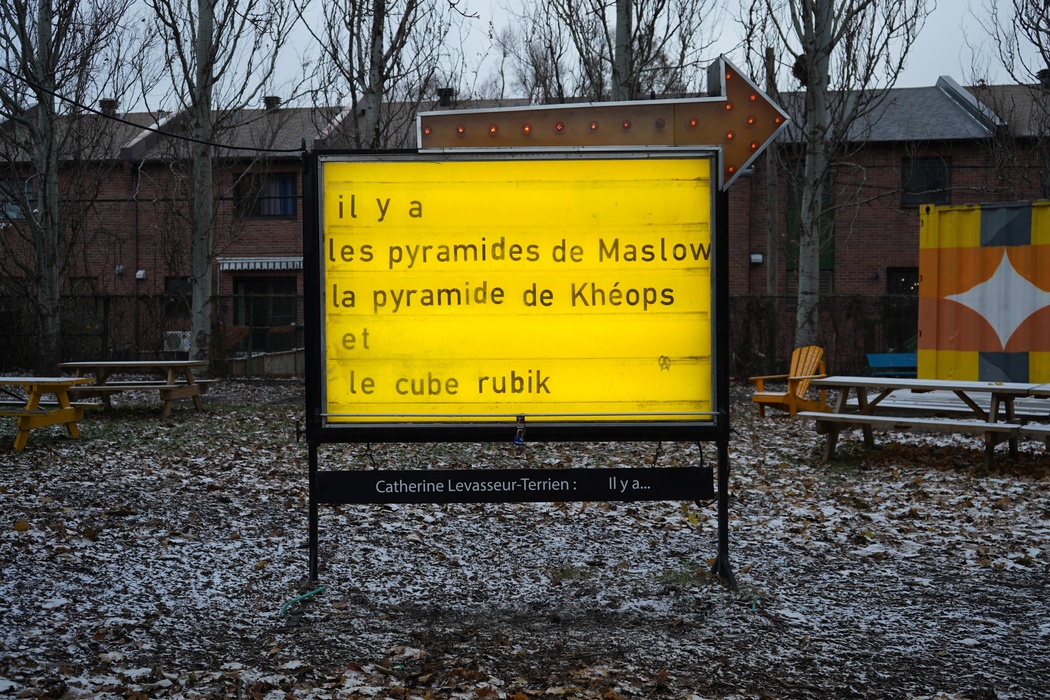Until February 4, 2026, the DARE-DARE illuminated sign, located in Sainte-Cunégonde Park, will display a poetic body of work by artist Catherine Levasseur-Terrien.