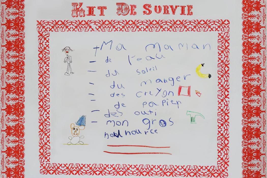 - Presentation of photos of the survival kits designed by the vendors of Notre-Dame street, with items from their store.