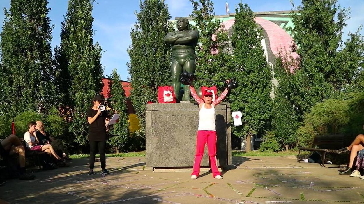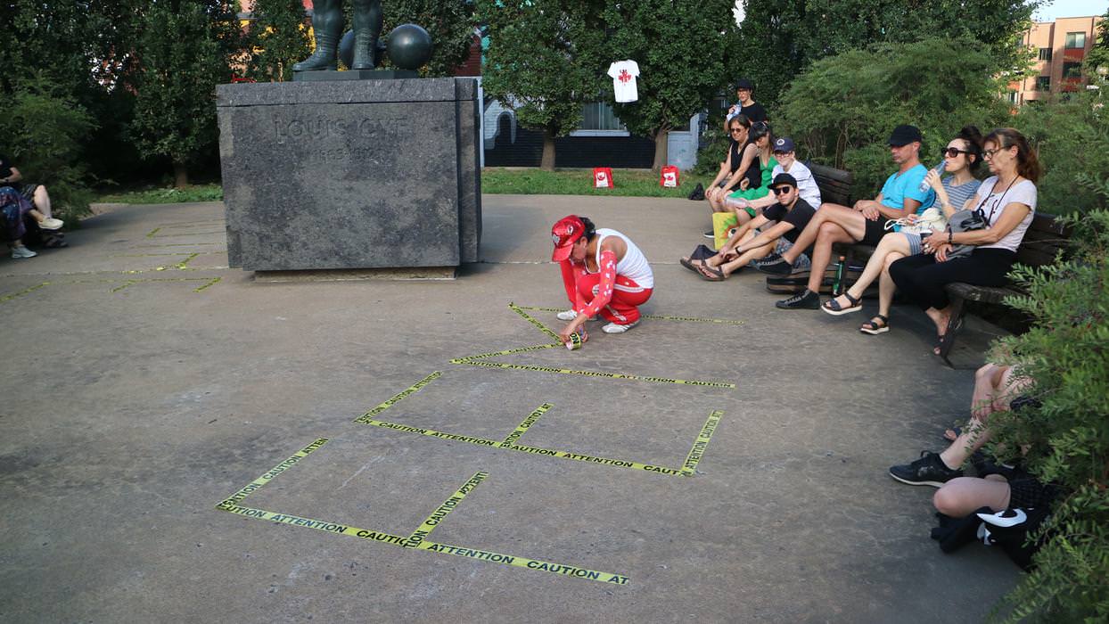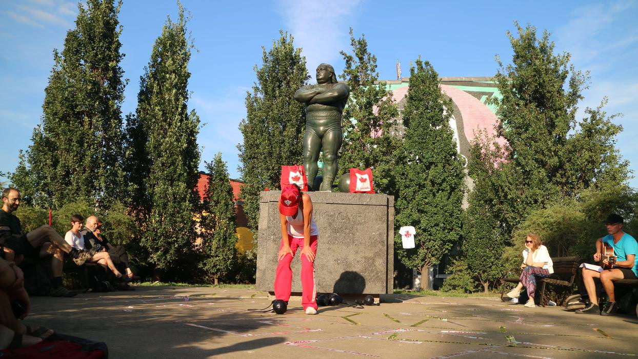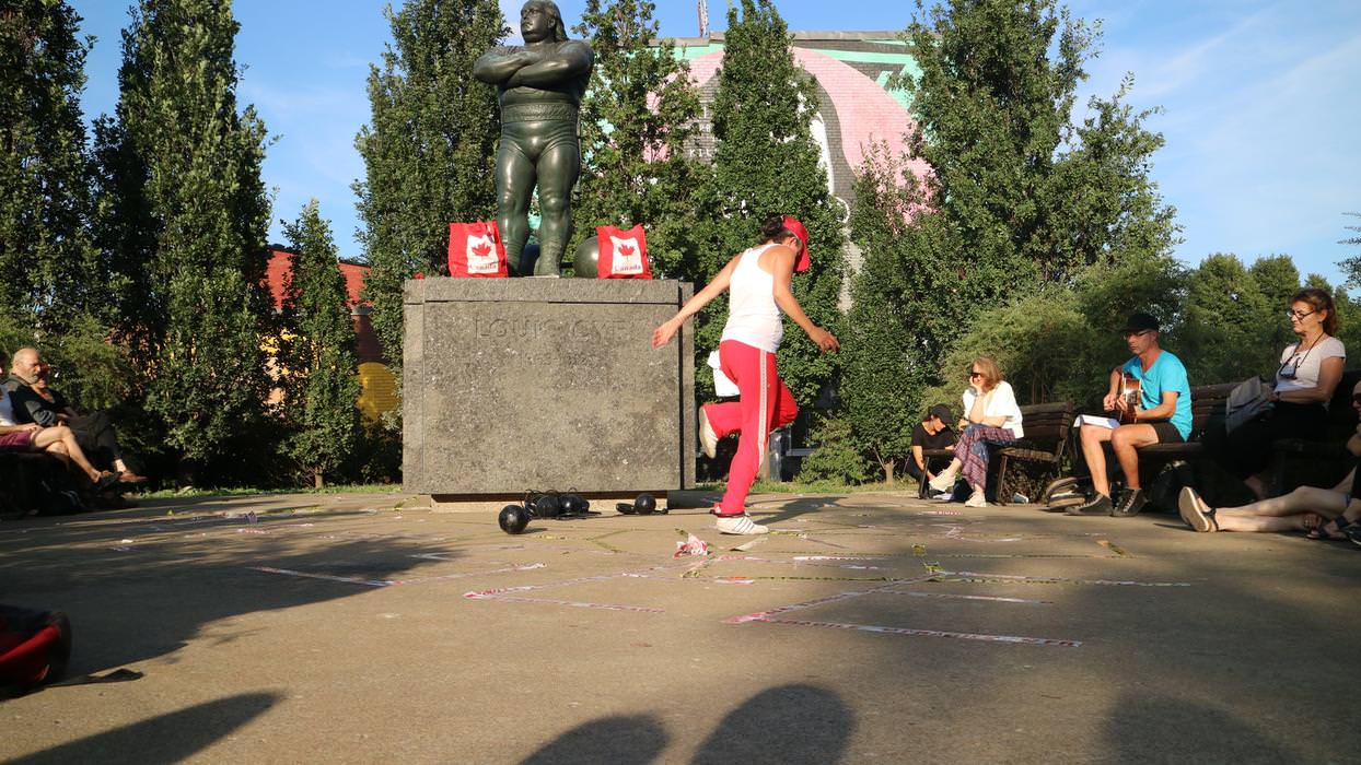 comprend une série de performances débutant par L’ARRACHÉ, une occupation du Parc des Hommes-Forts pour laquelle Les jeux de force de Fritta Caro vont mettre à l’épreuve les identités qu’elle convoque.