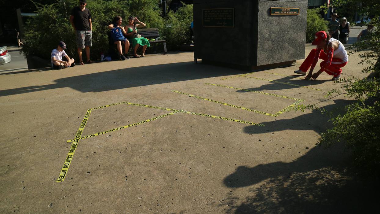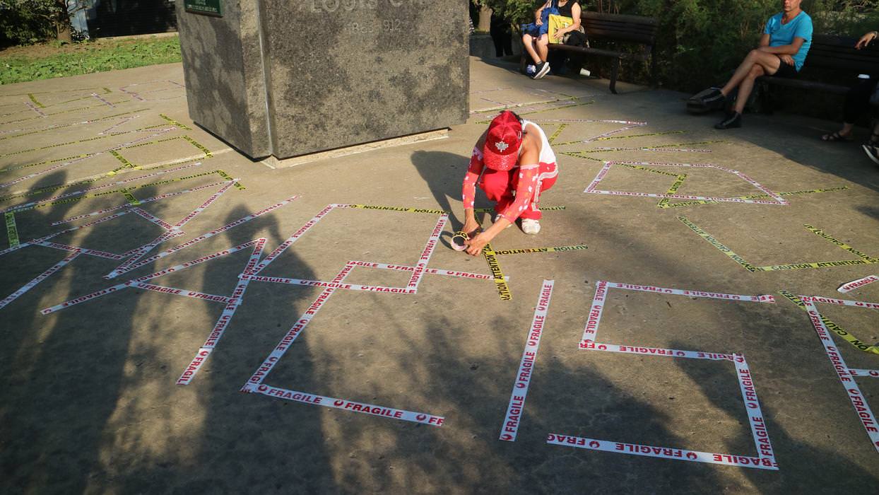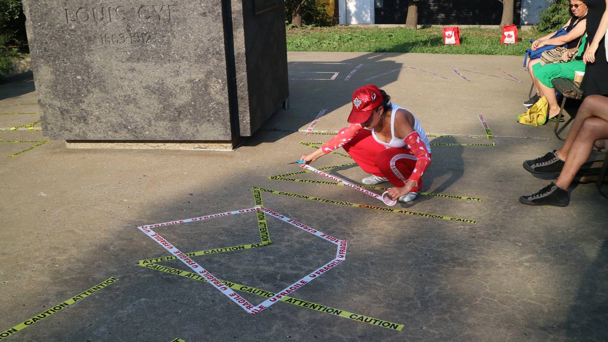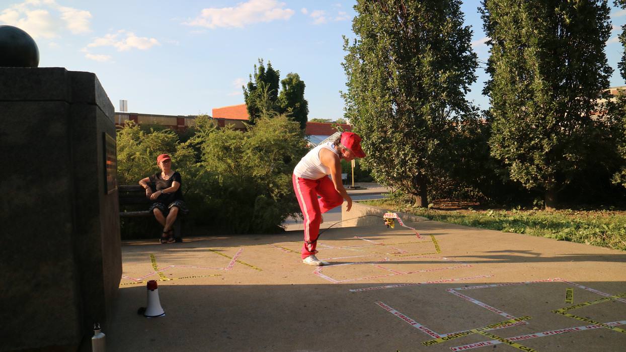 comprend une série de performances débutant par L’ARRACHÉ, une occupation du Parc des Hommes-Forts pour laquelle Les jeux de force de Fritta Caro vont mettre à l’épreuve les identités qu’elle convoque.
