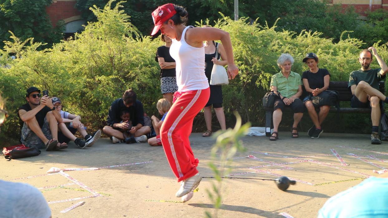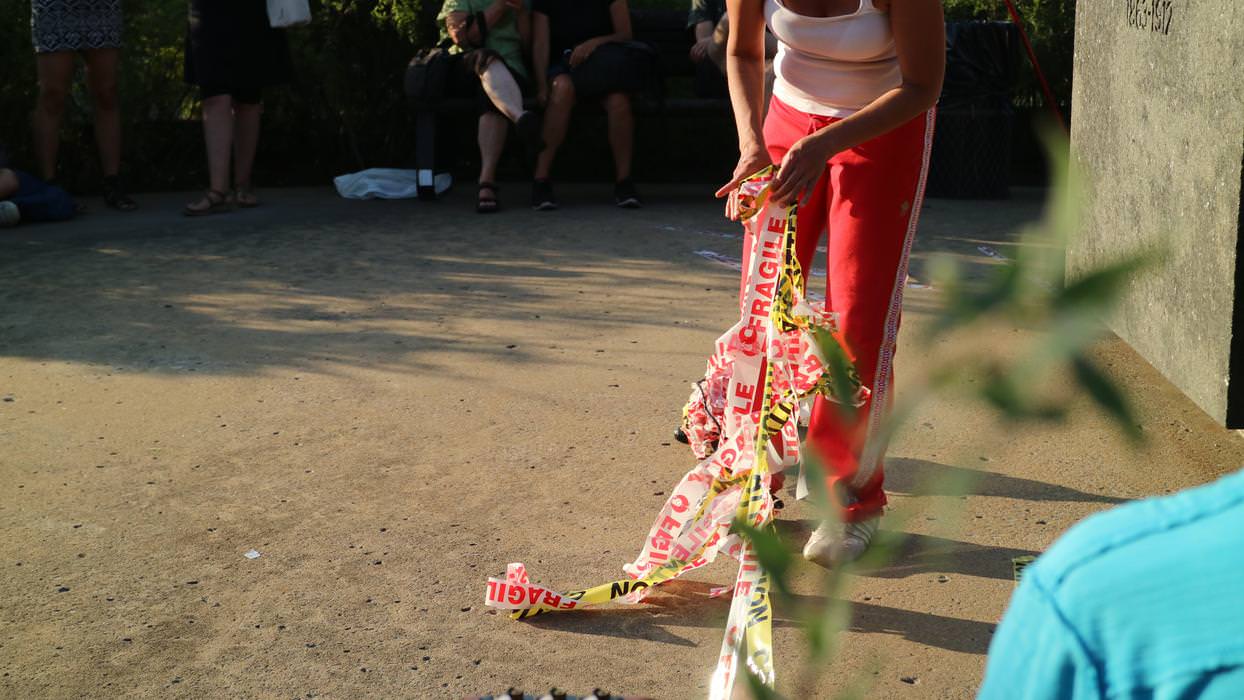 Esta nueva serie de performances de la artista comienza con L’arraché; una ocupación del Parc des Hommes-Forts donde Los Juegos de Fuerza de Fritta Caro van a poner a prueba las identidades que ella convoca.