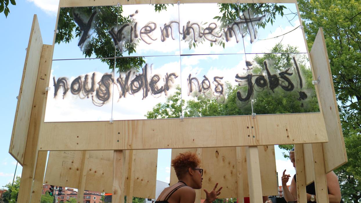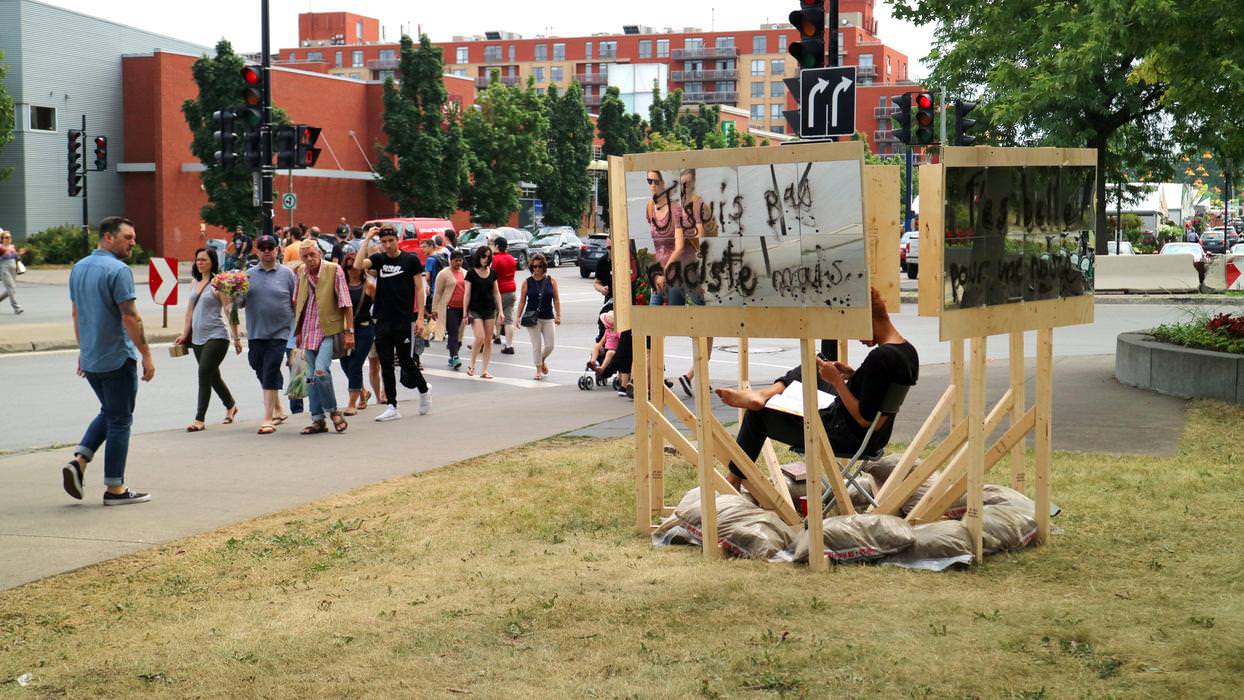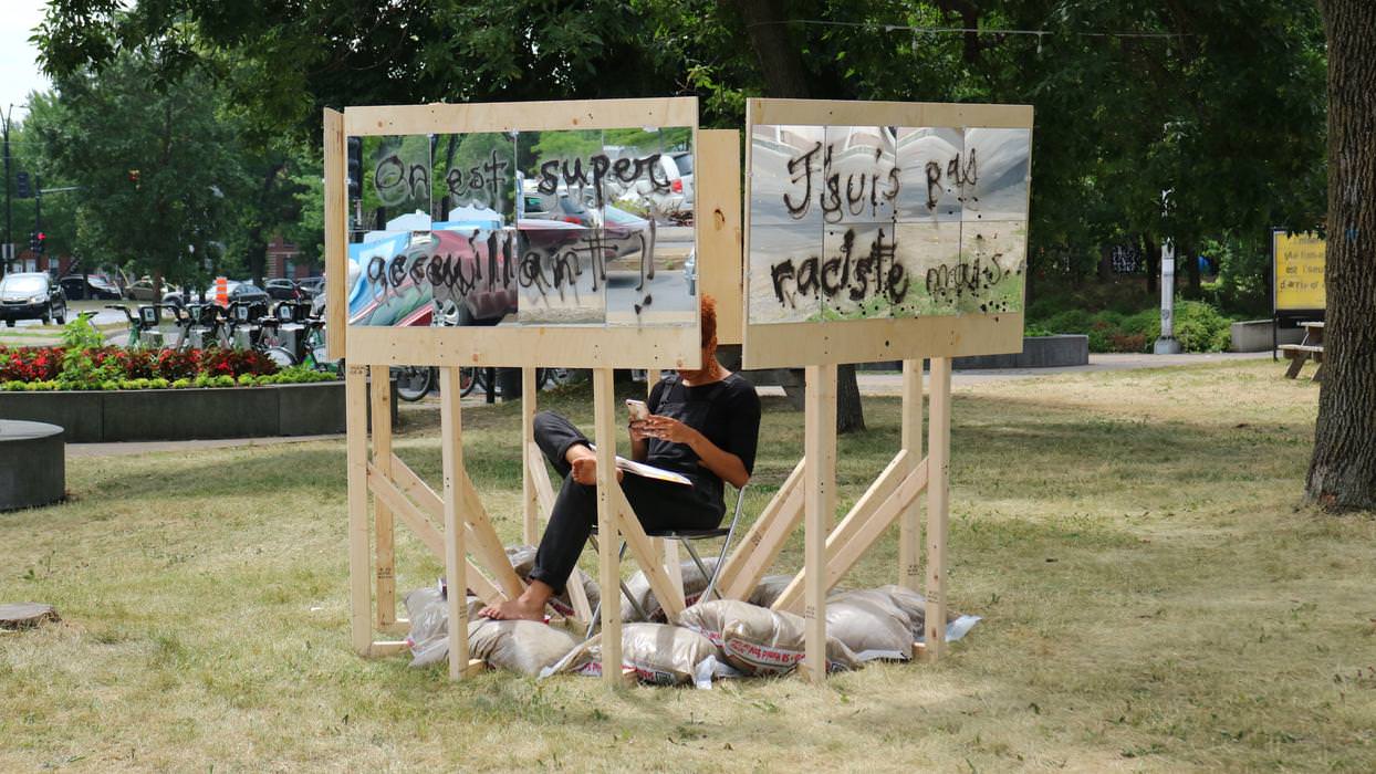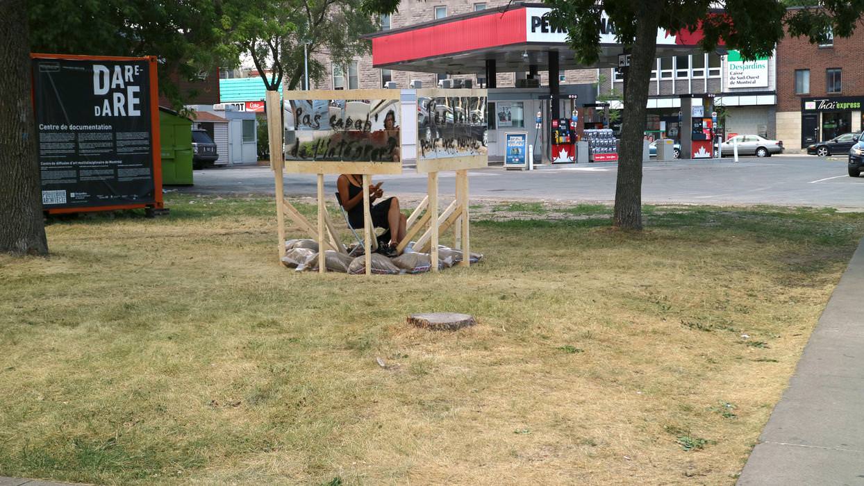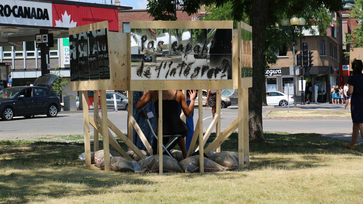 Dissonance cognitive / Cognitive dissonance est une œuvre en deux temps: d’abord une installation en espace public puis le lieu d’une performance de longue durée.