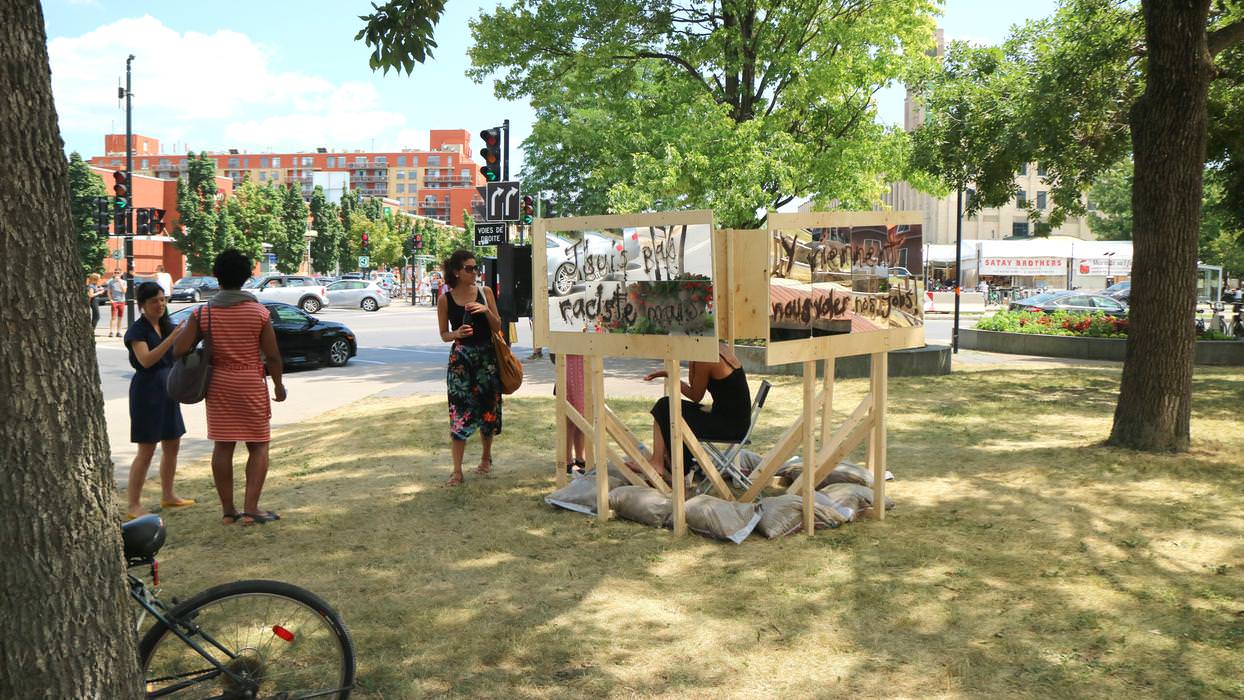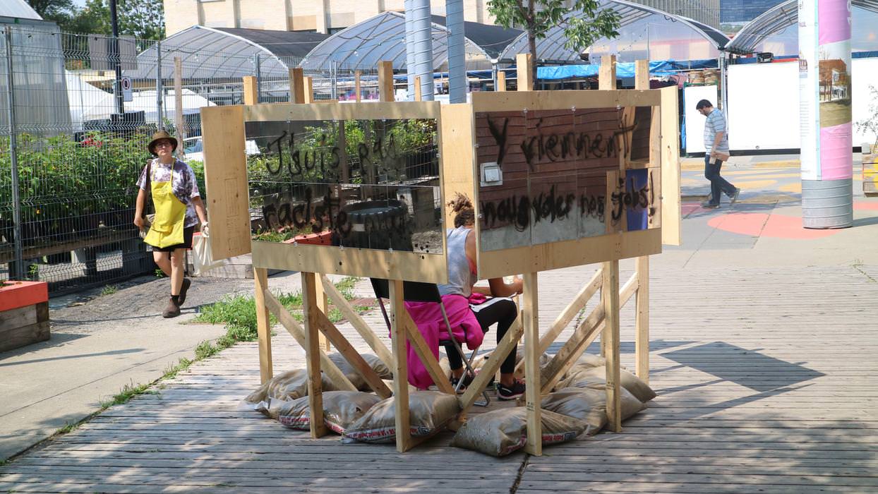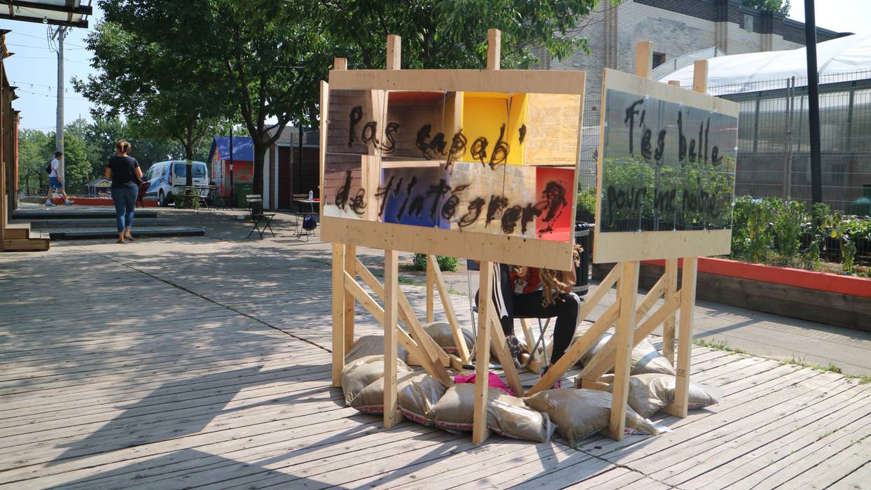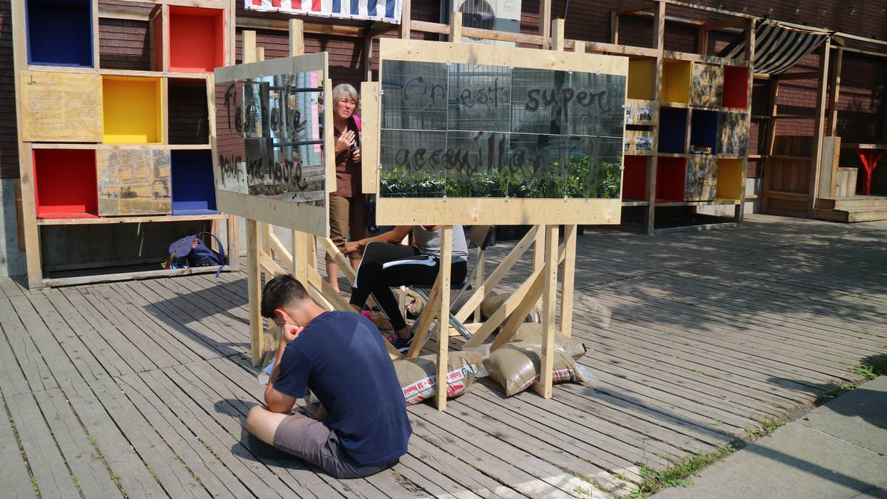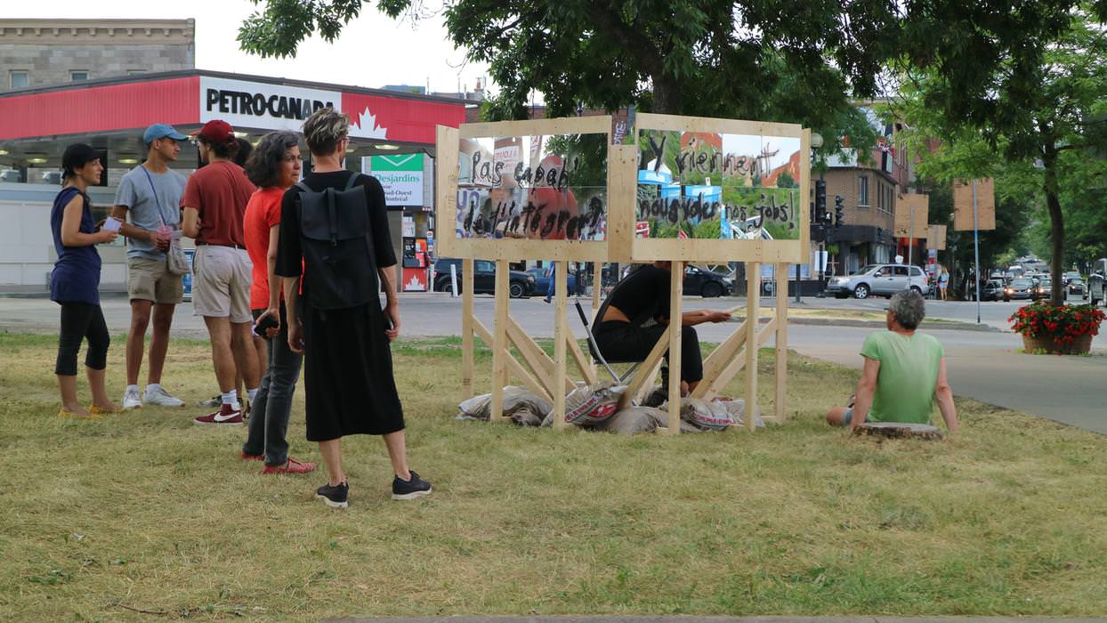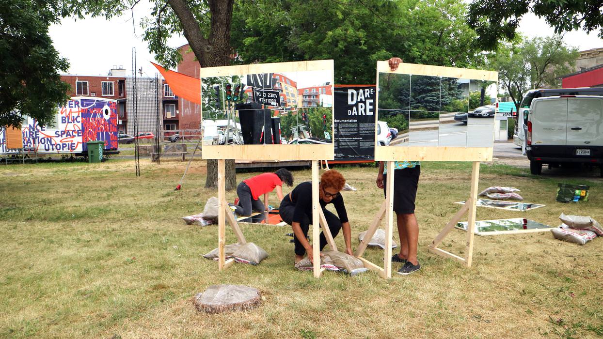 Dissonance cognitive / Cognitive dissonance est une œuvre en deux temps: d’abord une installation en espace public puis le lieu d’une performance de longue durée.