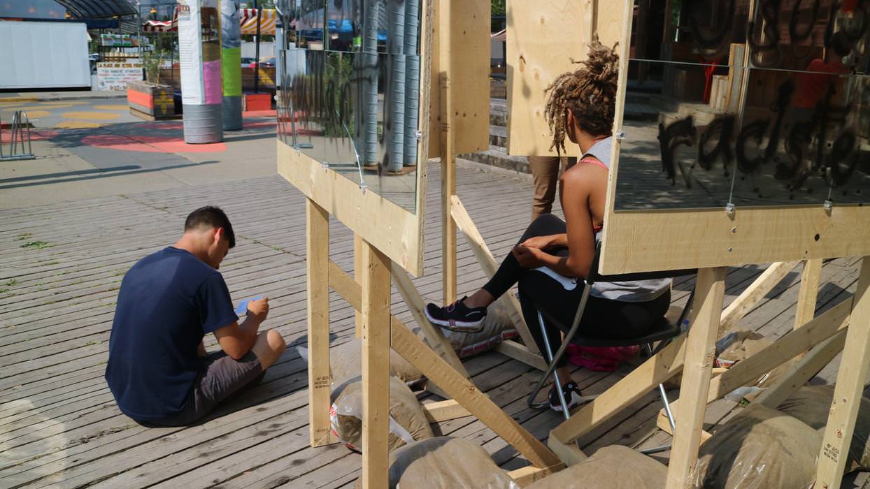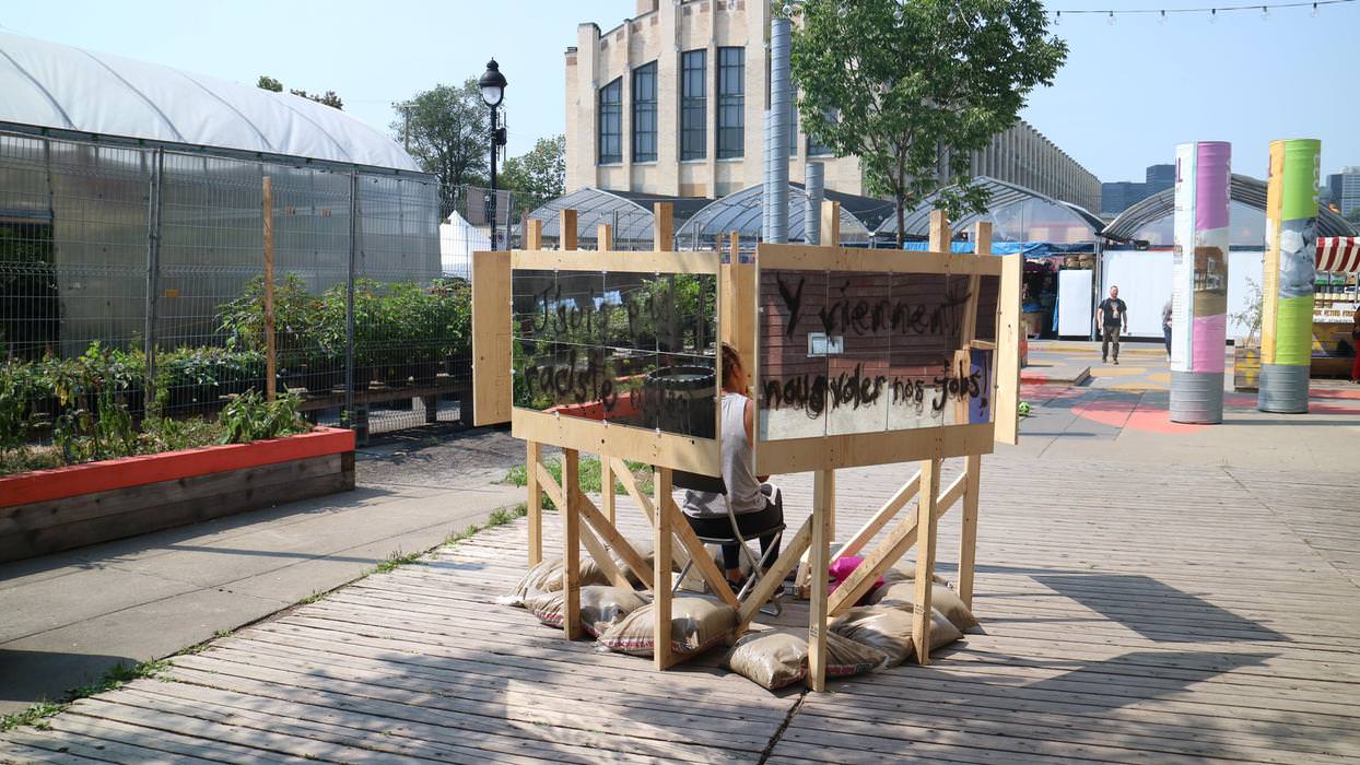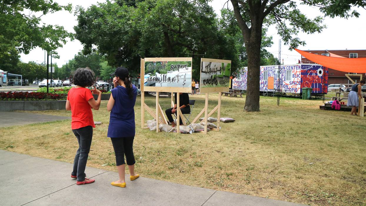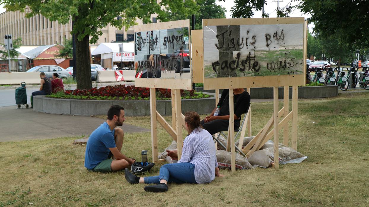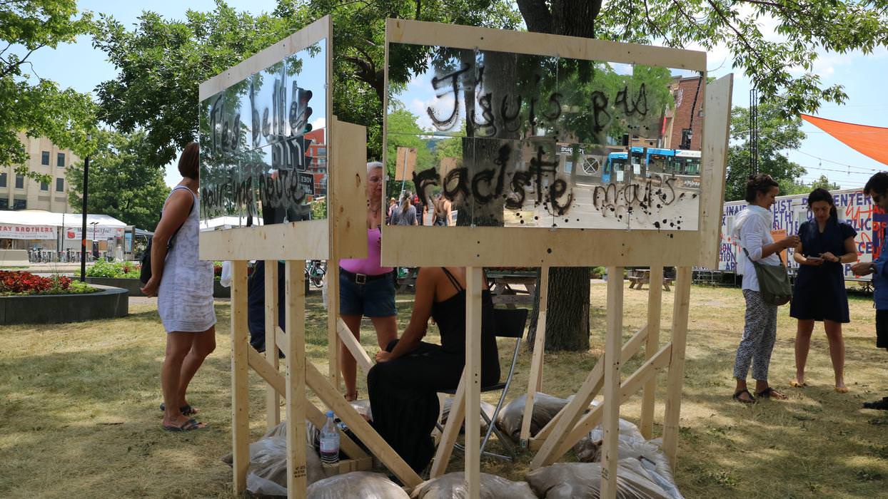 Dissonance cognitive / Cognitive dissonance est une œuvre en deux temps: d’abord une installation en espace public puis le lieu d’une performance de longue durée.