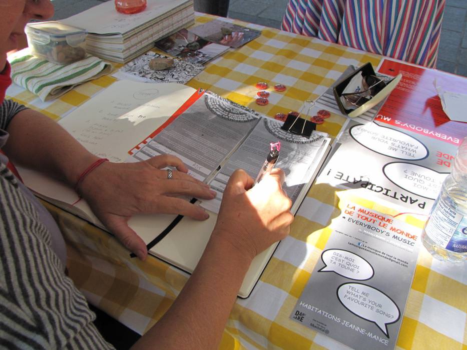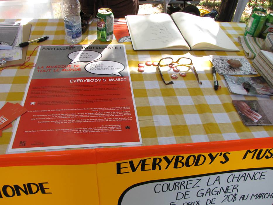 LANCEMENT 5@9 À LA ROULOTTE SAMEDI 1er NOVEMBRE La Musique de tout le monde, un projet interdisciplinaire de Magali Babin et Sylvie Cotton, a débuté en août 2013. Il a consisté à aborder les résidentes et résidents du complexe des Habitations Jeanne-Mance (HJM) dans le but de réaliser ensuite plusieurs projets sonores.