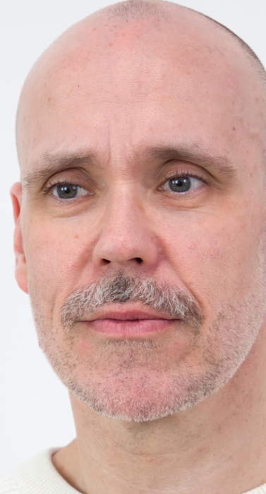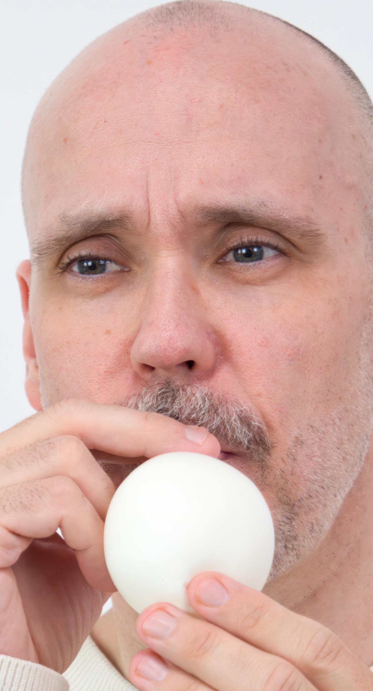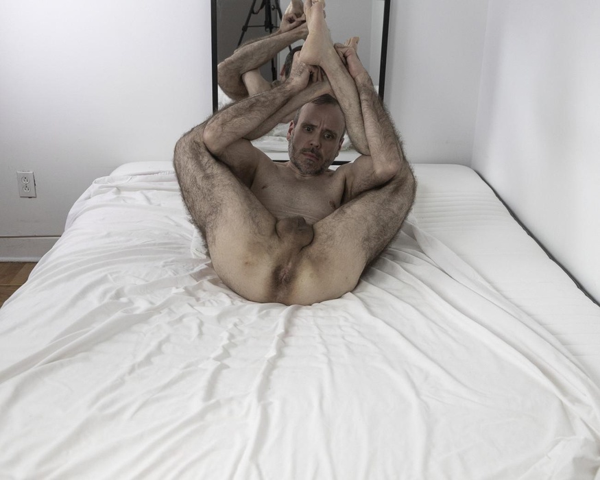 Steve Giasson. Performance invisible n.º 276 (Sonrojarse de sí mismo). Fotografía no seleccionada inicialmente de la Performance invisible n.º 218 (Ser su propio director). Reenactment de Ion Grigorescu. Omagiu lui Bacon [Homenaje a Bacon]. 1977. A partir de Francis Bacon. Tríptico – Estudios del cuerpo humano. 1970. Performer: Steve Giasson. Crédito fotográfico: Martin Vinette. Retoques fotográficos: Daniel Roy. 21 de enero de 2021. -