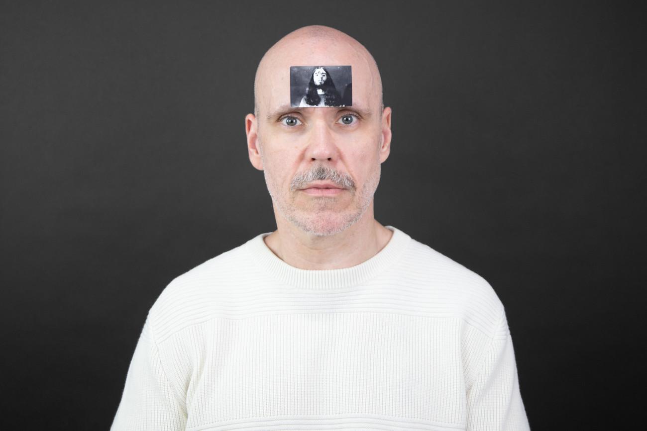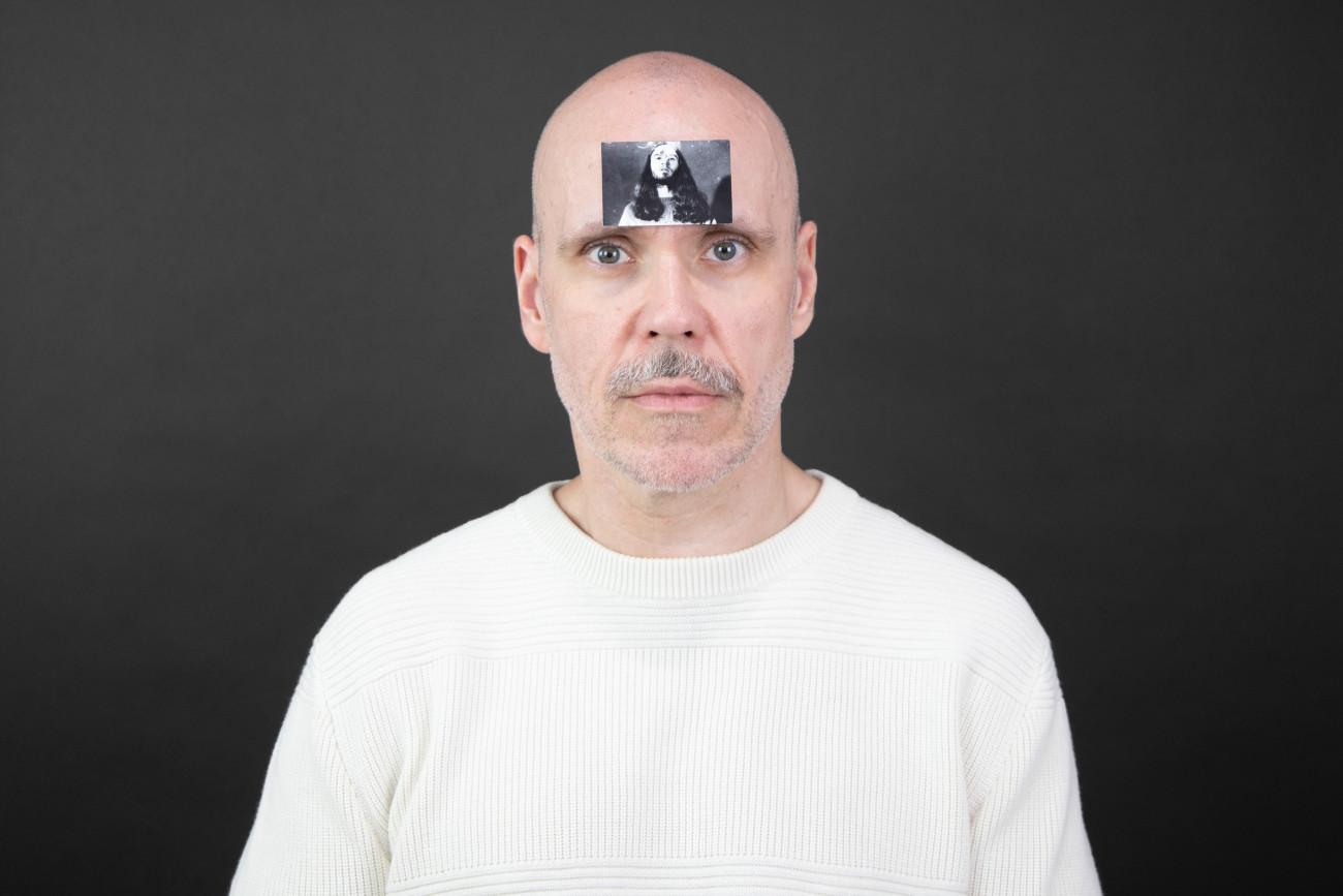 Steve Giasson. Performance invisible n.º 277 (Intercambiar identidad). Reescenificación de Ľubomír Ďurček. Prijímanie 1 – III. Stotožnenie / Acceptance – III. Identification. 1980. Intérprete: Steve Giasson. Crédito fotográfico: Martin Vinette. Asistencia: Geneviève Dagenais. Retoque fotográfico: Charles-Étienne Lebrun. Centre des arts actuels SKOL. 28 de julio de 2024. -