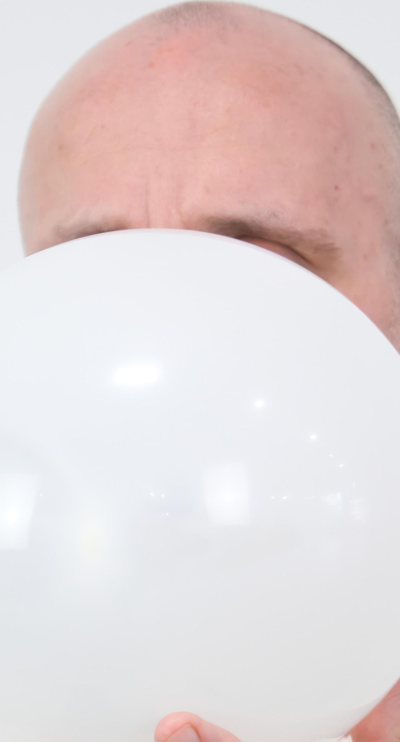 Steve Giasson. Performance invisible n.º 275 (Querer ser conocido / Querer ser olvidado). Reenactment de Helena Almeida, Sin título, 2003. Performer: Steve Giasson. Crédito fotográfico: Martin Vinette. Retoque fotográfico: Charles-Étienne Lebrun. Galerie B-312. 10 de agosto de 2025. -